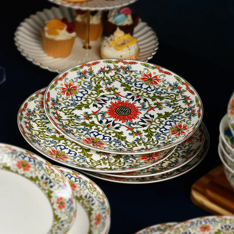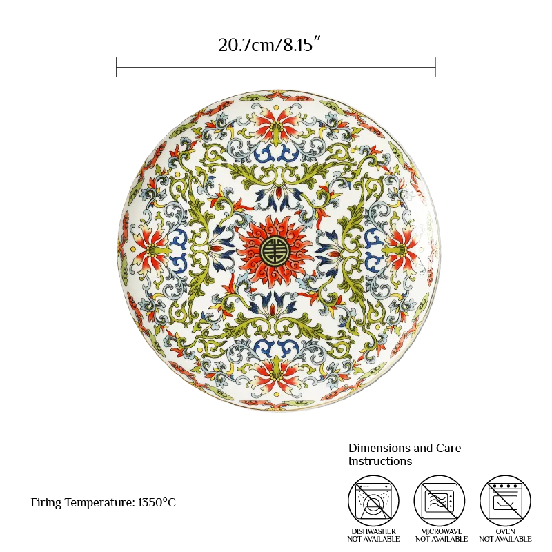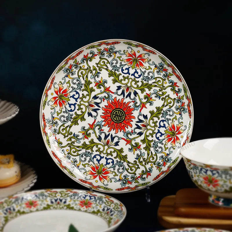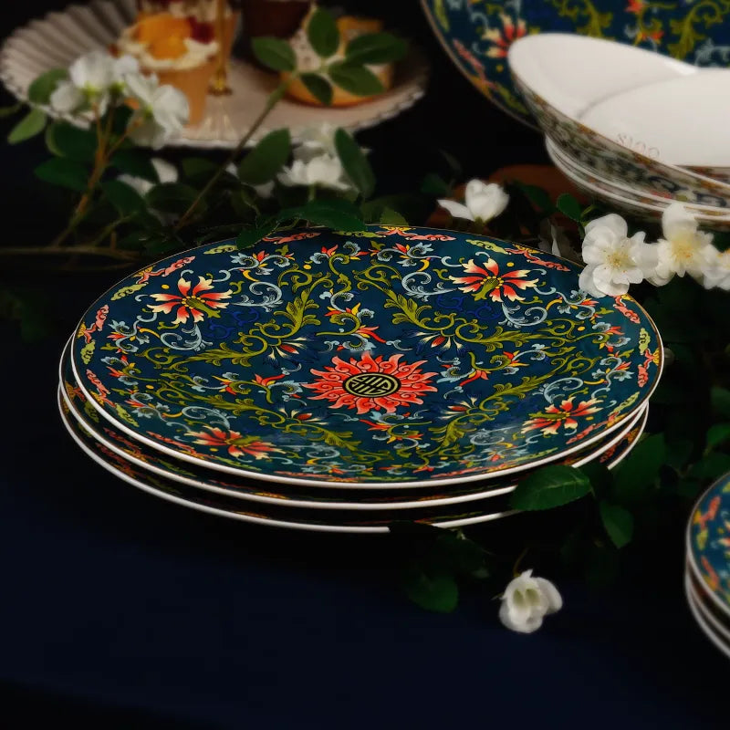 10’’ Chinoiserie Luxury Enamel Painting Bone China Round Dinner Plate
