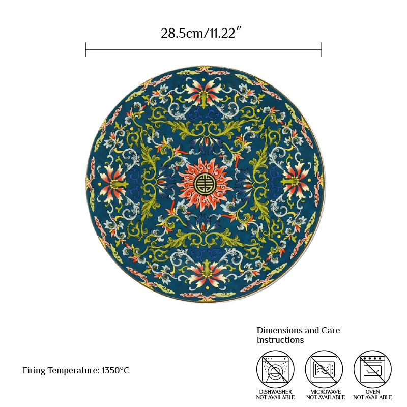 11’’ Chinoiserie Luxury Enamel Painting Bone China Round Dinner Plate