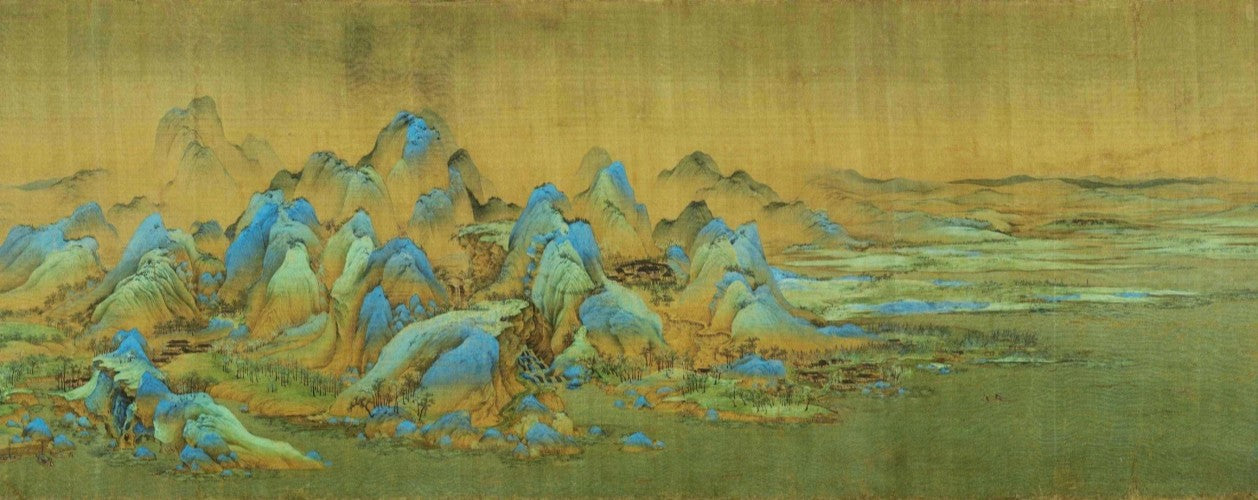 "ألف لي من الأنهار والجبال" هي لوحة مناظر طبيعية شهيرة للفنان وانغ زيمينج، والتي رسمها في عام 1113 خلال عهد أسرة سونغ الشمالية عندما كان يبلغ من العمر 18 عامًا فقط. تعرض هذه التحفة الفنية الجبال المهيبة والأنهار المتدفقة والأنشطة البشرية النابضة بالحياة، مما يوضح الانسجام بين الطبيعة والبشرية. تستخدم اللوحة أسلوب اللونين الأزرق والأخضر، مما يسلط الضوء على ازدهار وثقافة العصر. اليوم، تعد جزءًا من مجموعة متحف القصر في بكين، وتشتهر بأهميتها الفنية والتاريخية.