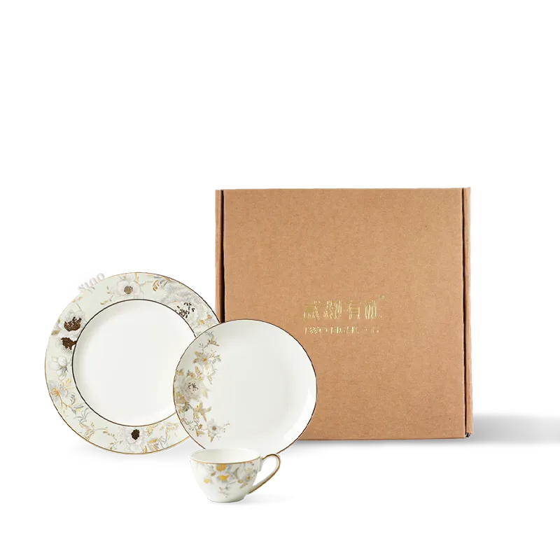 طقم أكواب وأطباق فاخر من الخزف الصيني، مكون من 3 قطع، بتصميم زهرة الفاوانيا والفراشة