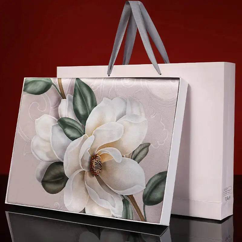 وشاح مربع من الحرير على الطراز الصيني بتصميم زهرة اللوتس 65 × 65 سم و88 × 88 سم