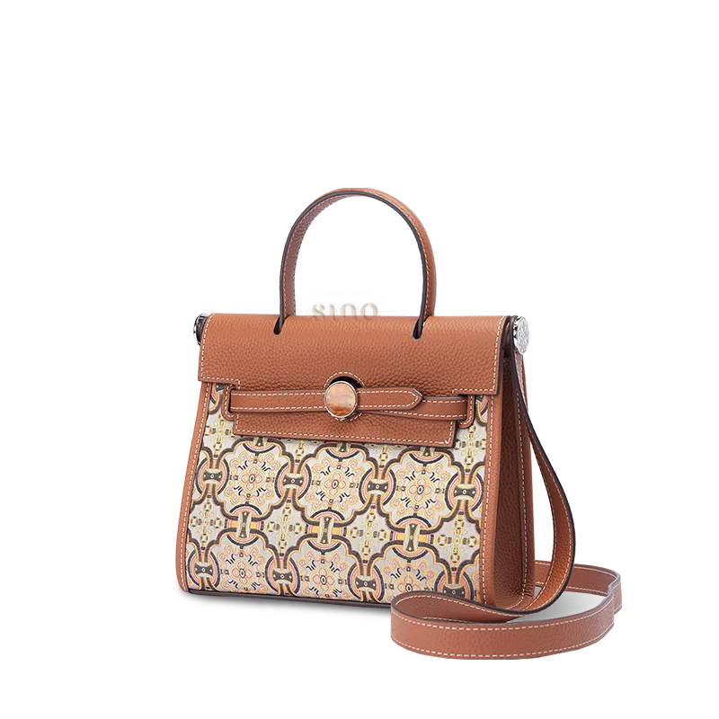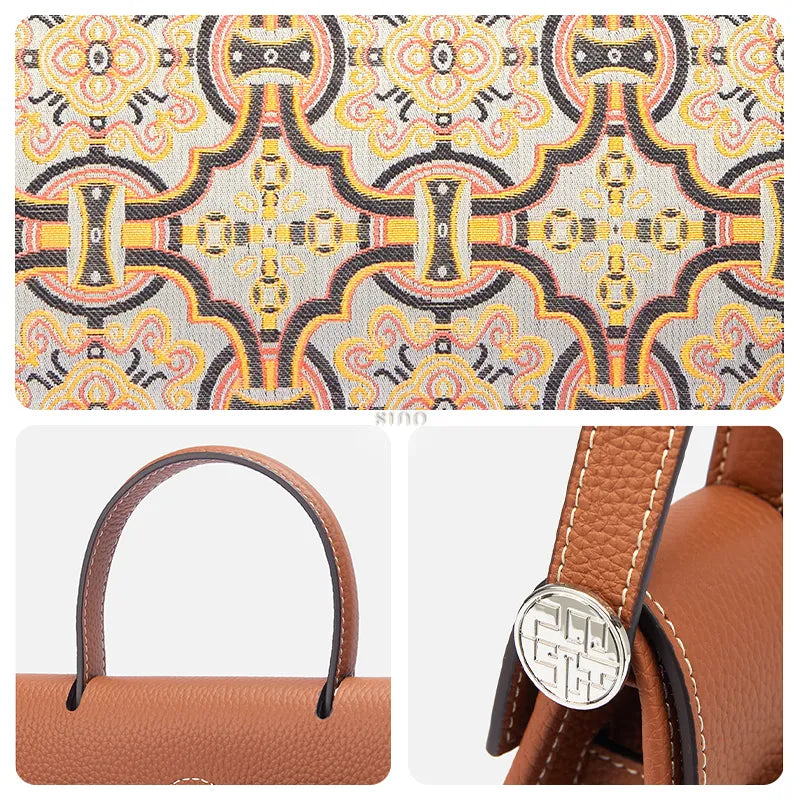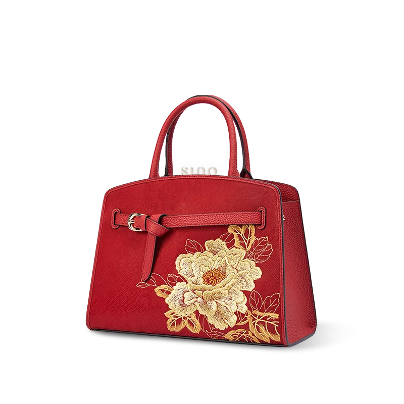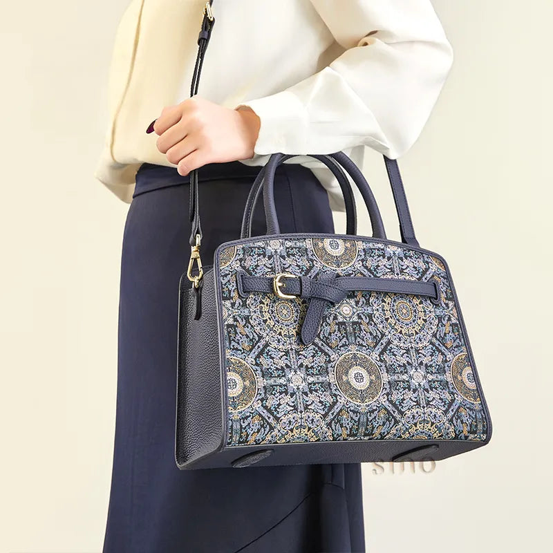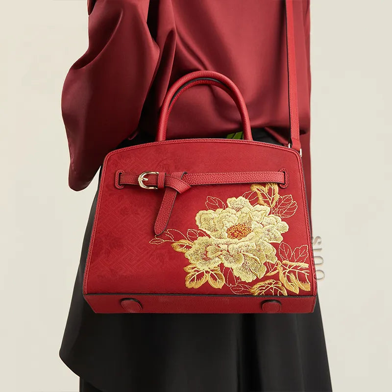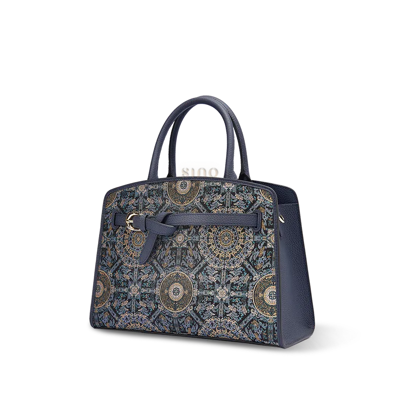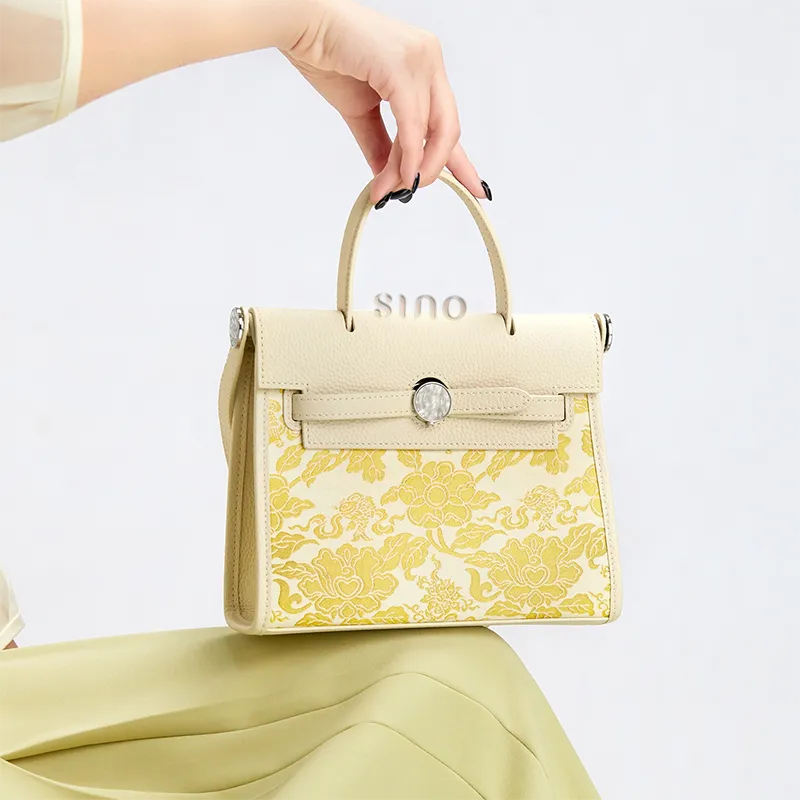 Chinoiserie Luxury Xiangyunsha Silk Leather Handbag wtih Printed Blossom
