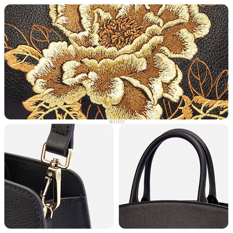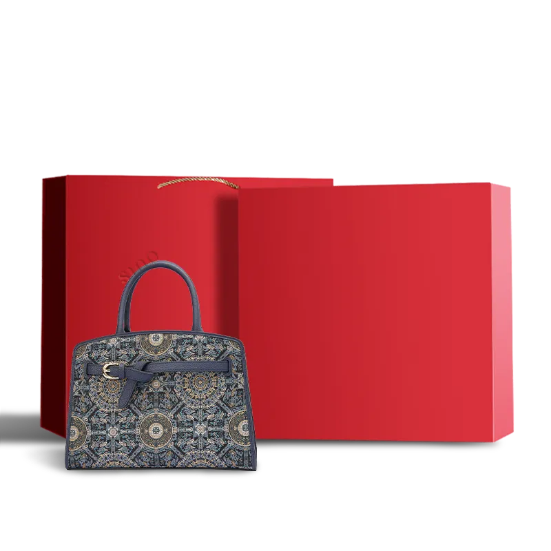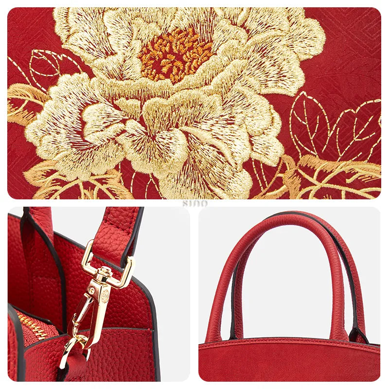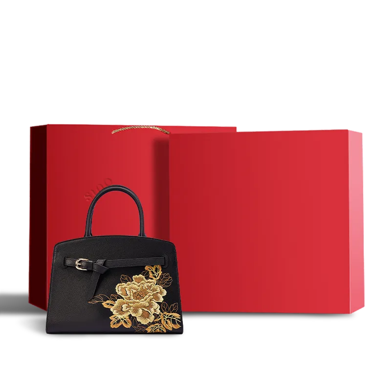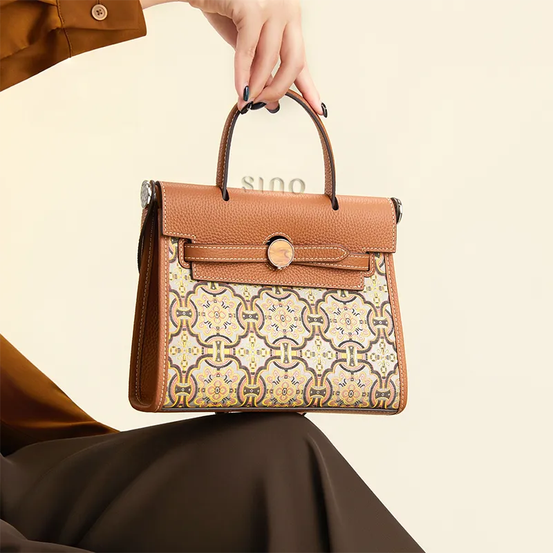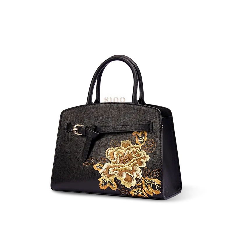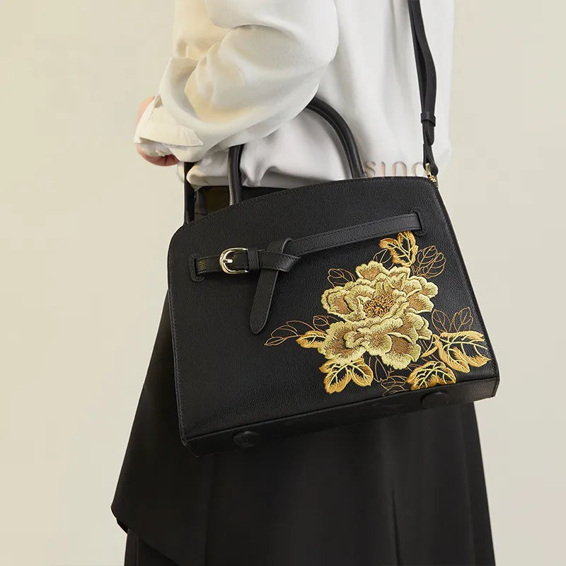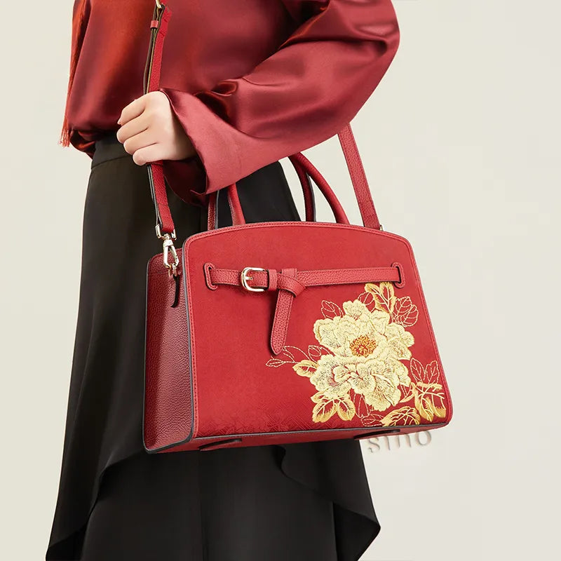 Chinoiserie Luxury Xiangyunsha Silk Leather Handbag wtih Printed Blossom