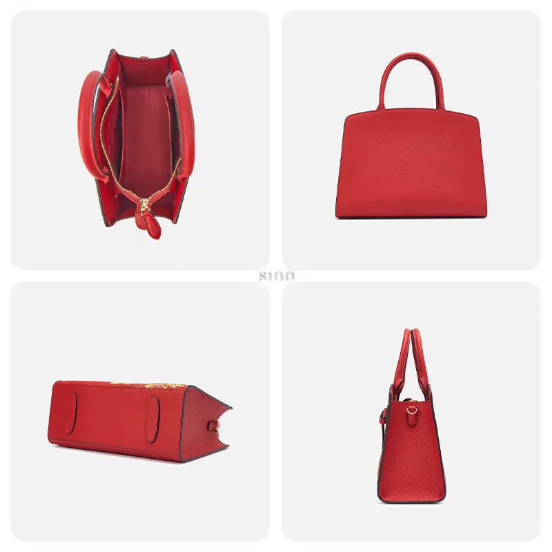 Chinoiserie Luxury Gold-Woven Song Brocade Double Happiness Floral Tote Bag