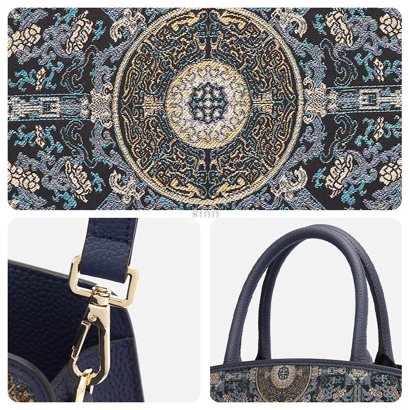 Luxury Chinoiserie Handcrafted Blue Starry Sky Zhuang Brocade Shoulder Bag