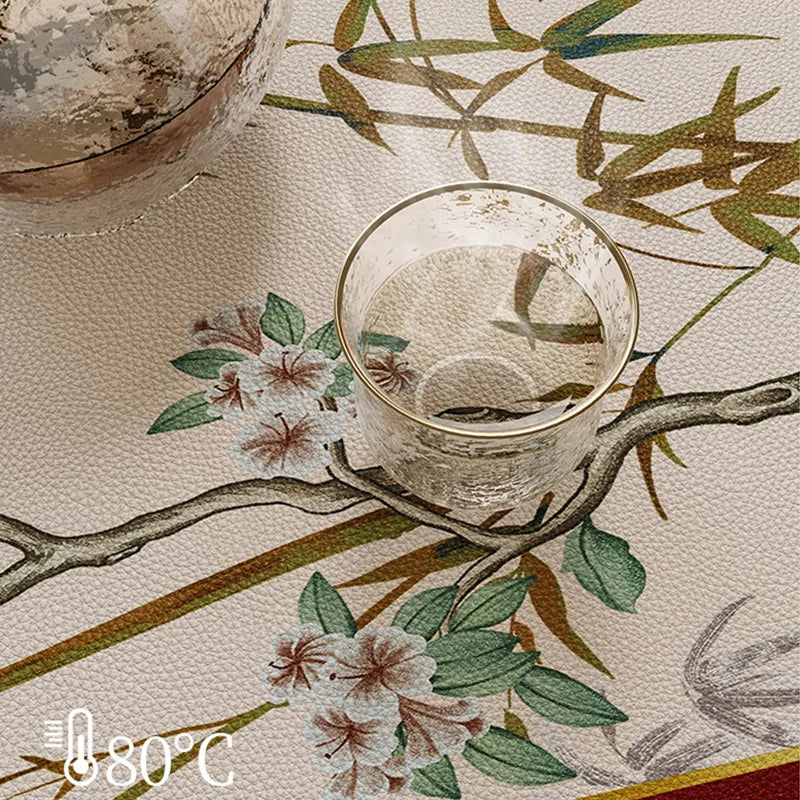 مفرش طاولة دائري من الجلد بتصميم صيني - مفرش طعام بتصميم زهور عتيقة