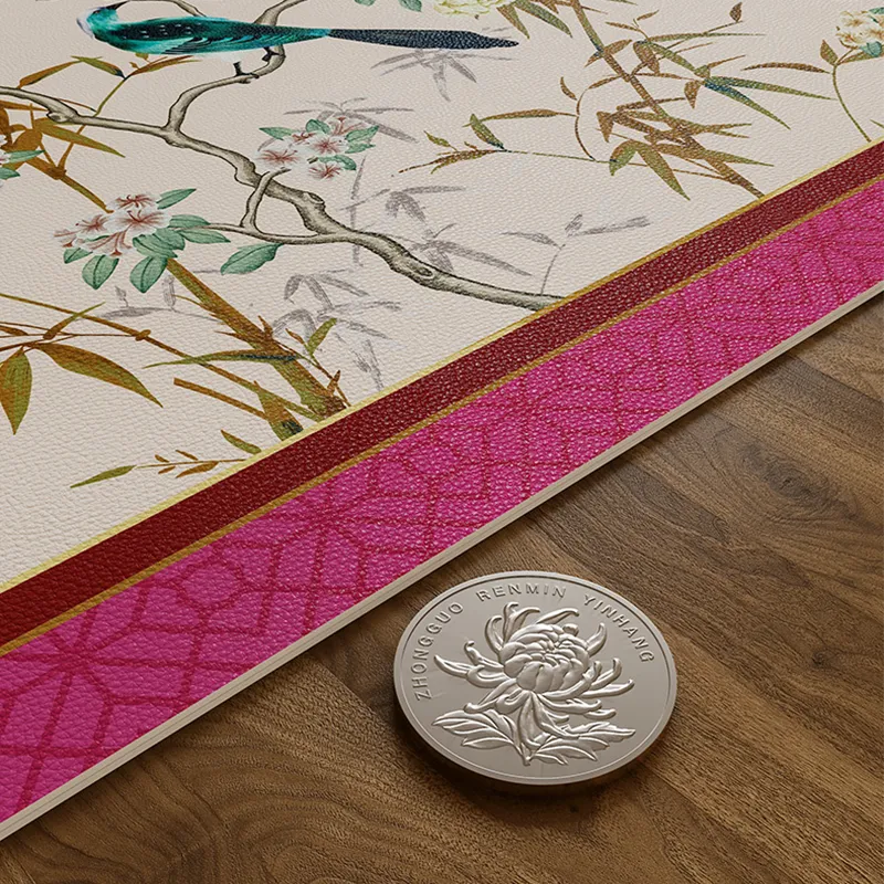 سجادة تصريف المطبخ بتصميم طائر زهري وردي بتصميم صيني عتيق
