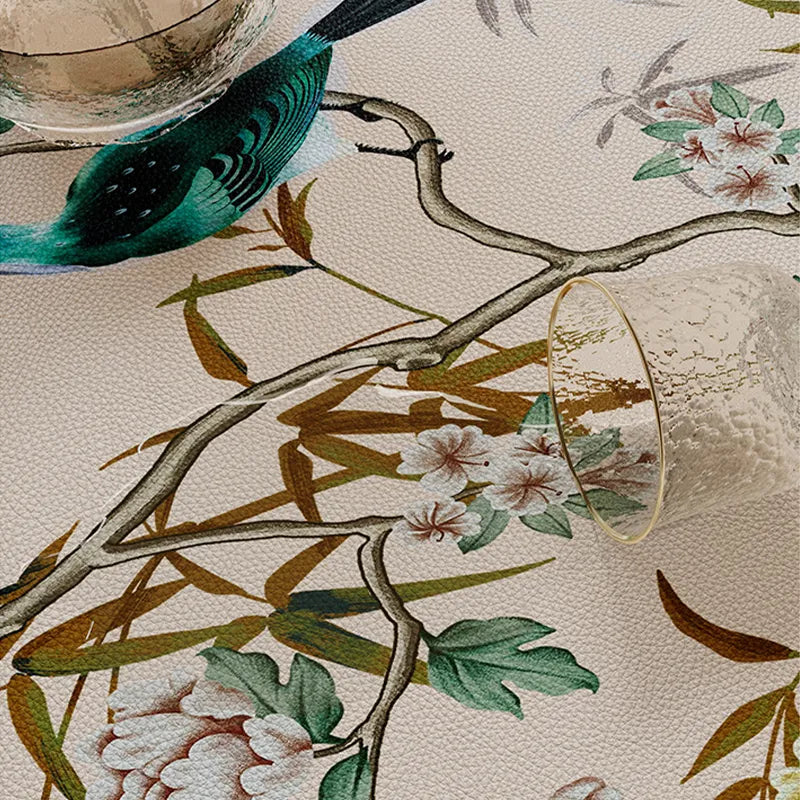 Chinoiserie Vintage Blue and White Porcelain Flowers and Birds Tablecloth