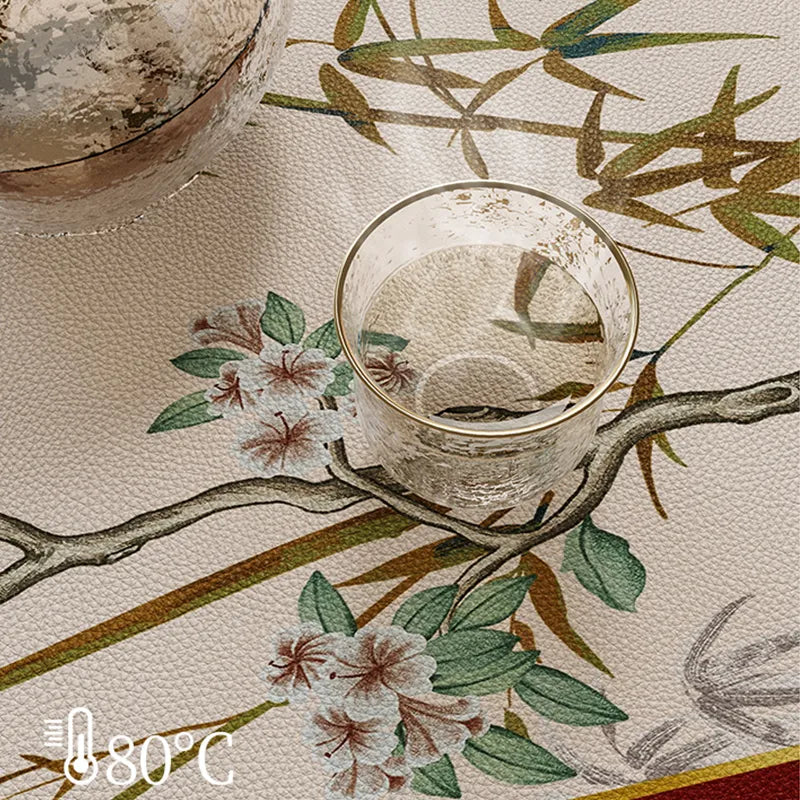 مفرش طاولة شاي صيني من الجلد العتيق مع سجادة من زهرة الكوبية الجبلية