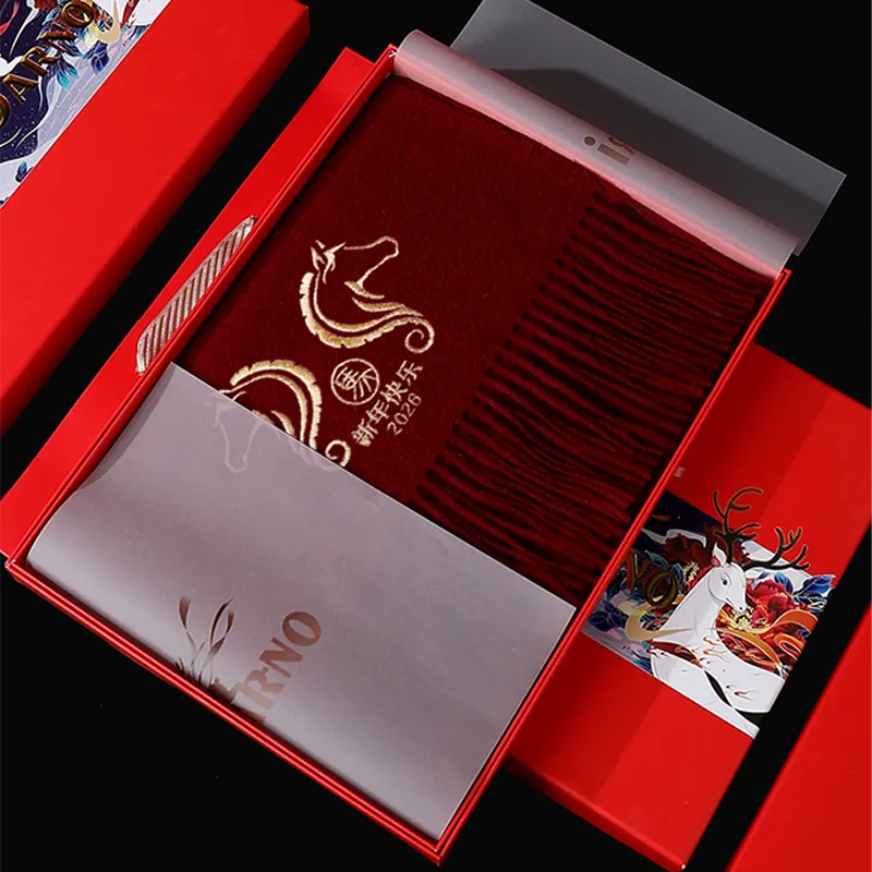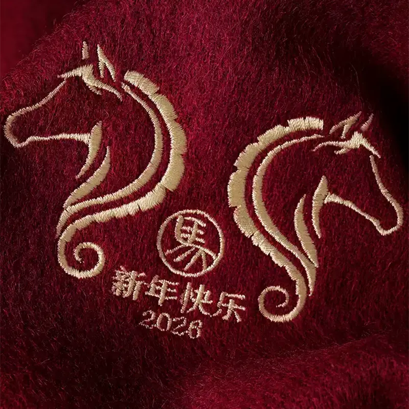 Luxury Embroidered Wool Cashmere Scarf – Galloping Horse of Fortune 2026