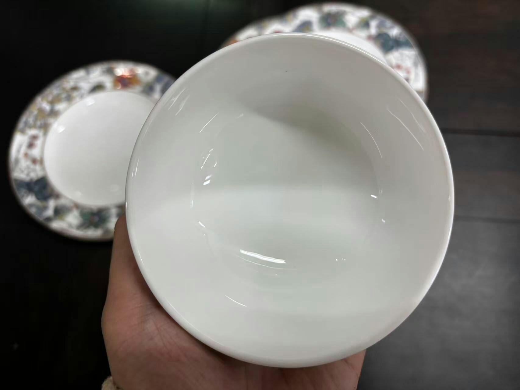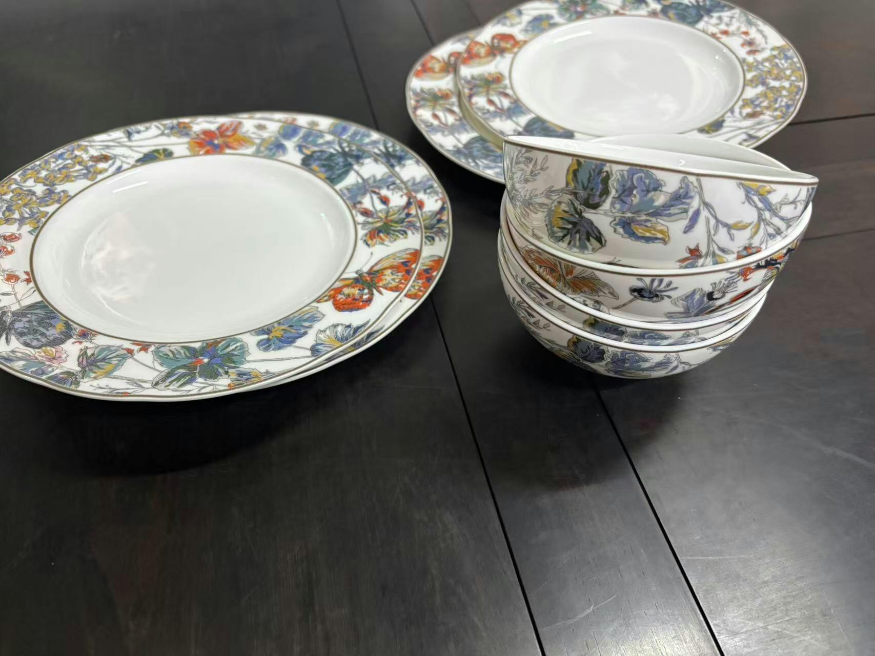 حوض فاخر من الخزف الصيني الفاخر مزود بقاعدة، مكون من 4 قطع، مقاس 4.5 بوصة، بتصميم فراشة وزهور على الطراز الصيني.