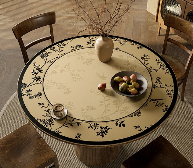 بساط طاولة دائري مقاوم للماء والزيت ولا يغسل