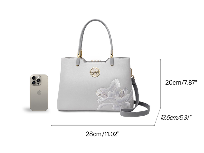 حقيبة يد نسائية أزاليا مطرزة من الجلد باللون الرمادي
