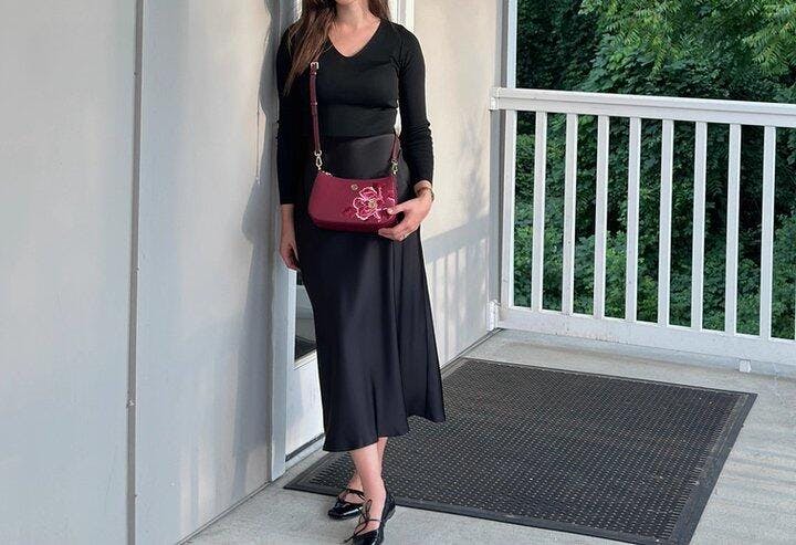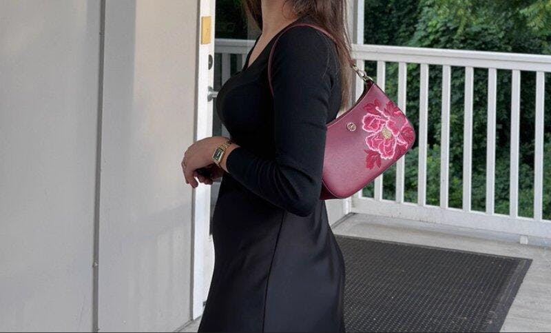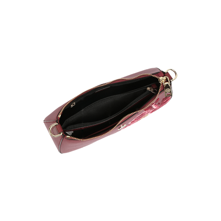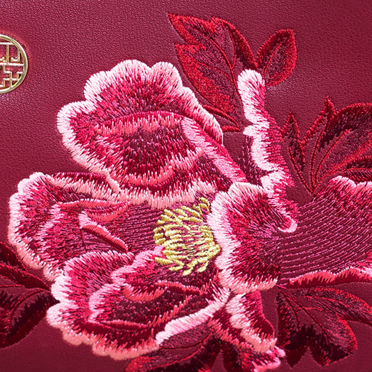 حقيبة كتف نسائية هوبو من الجلد الأحمر المطرز