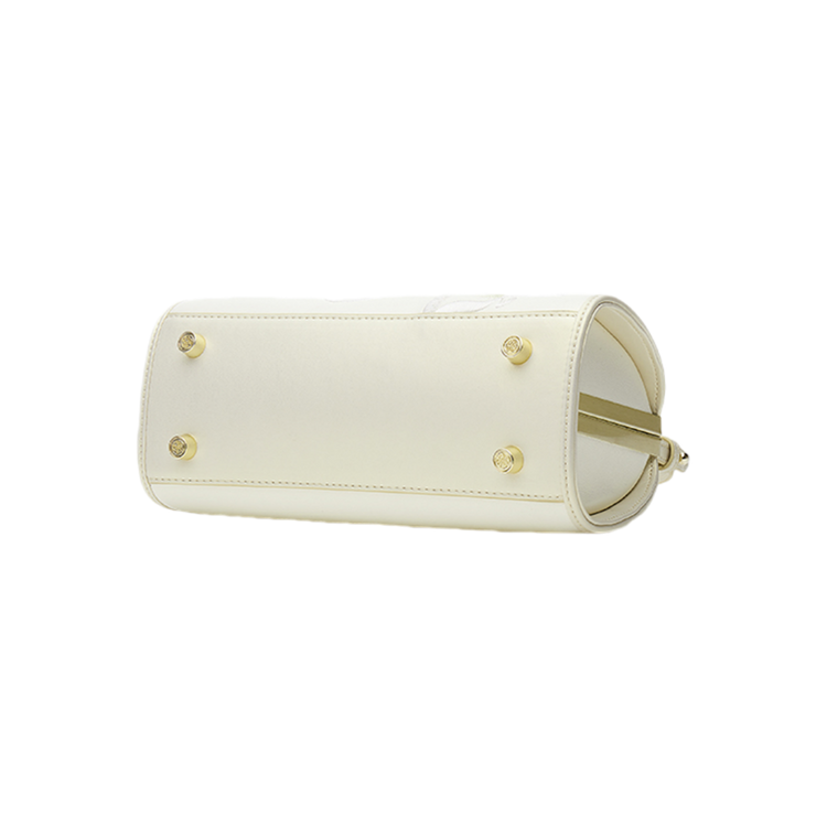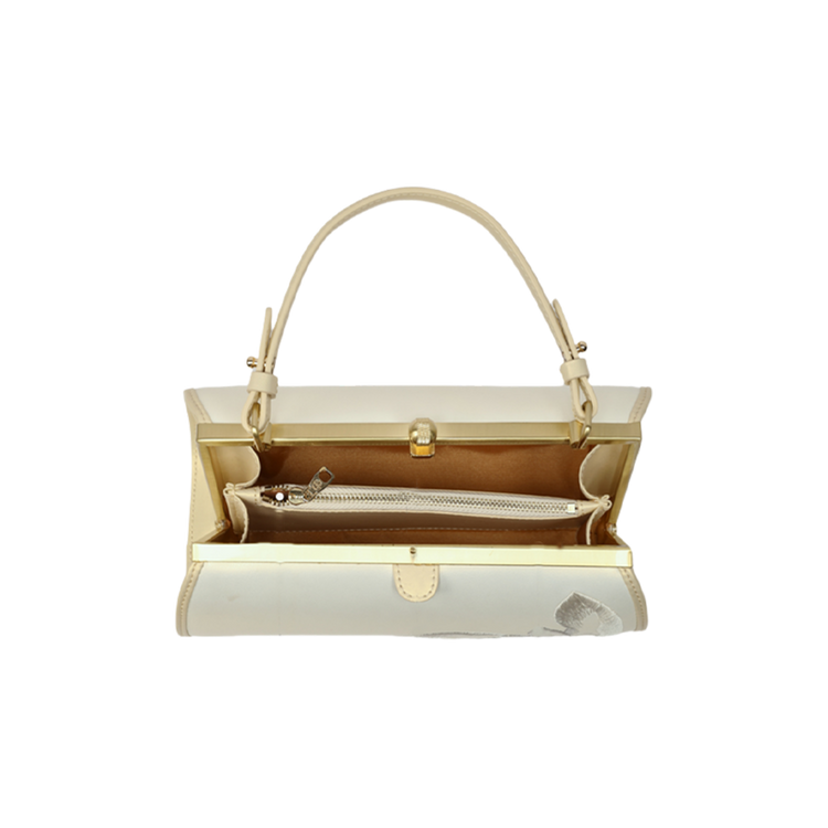 حقيبة كتف لوتس أنيقة من الجلد المطرز باللون الأبيض