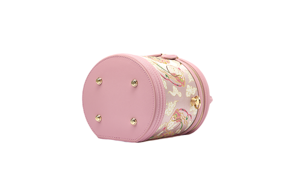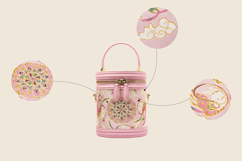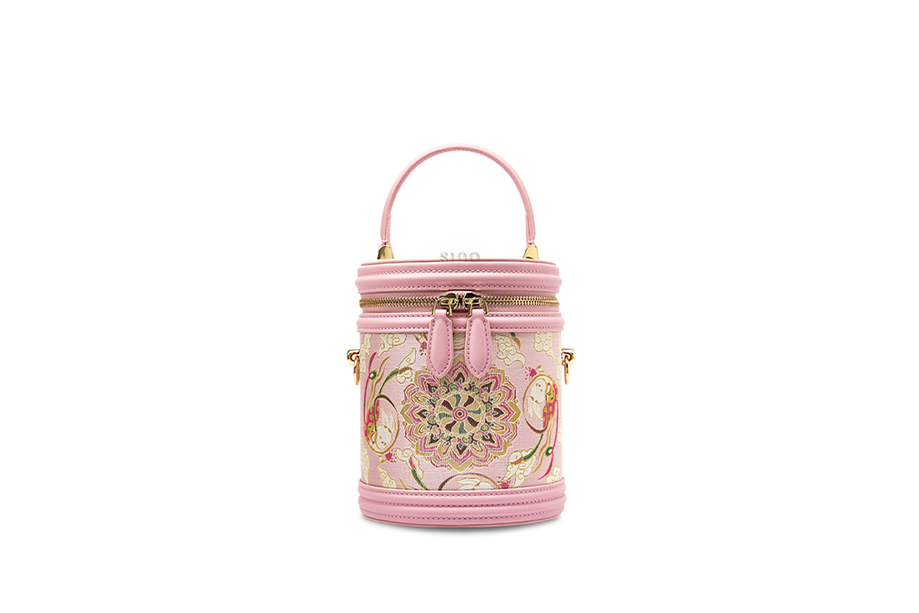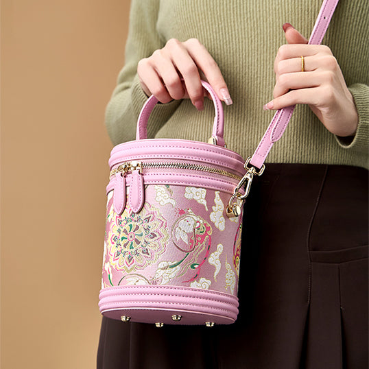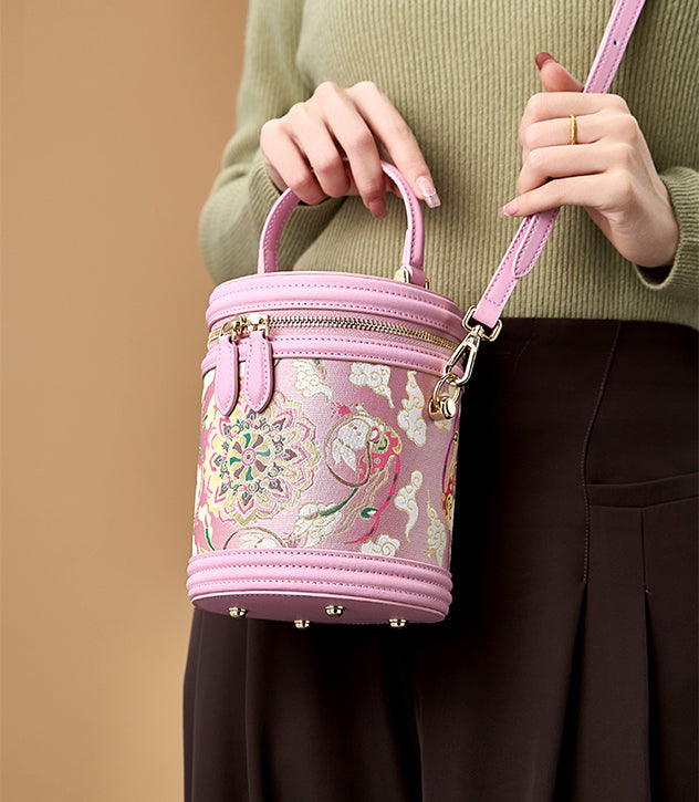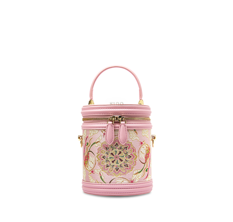 حقيبة مستديرة كلاسيكية من الحرير مطرزة بالأغنية