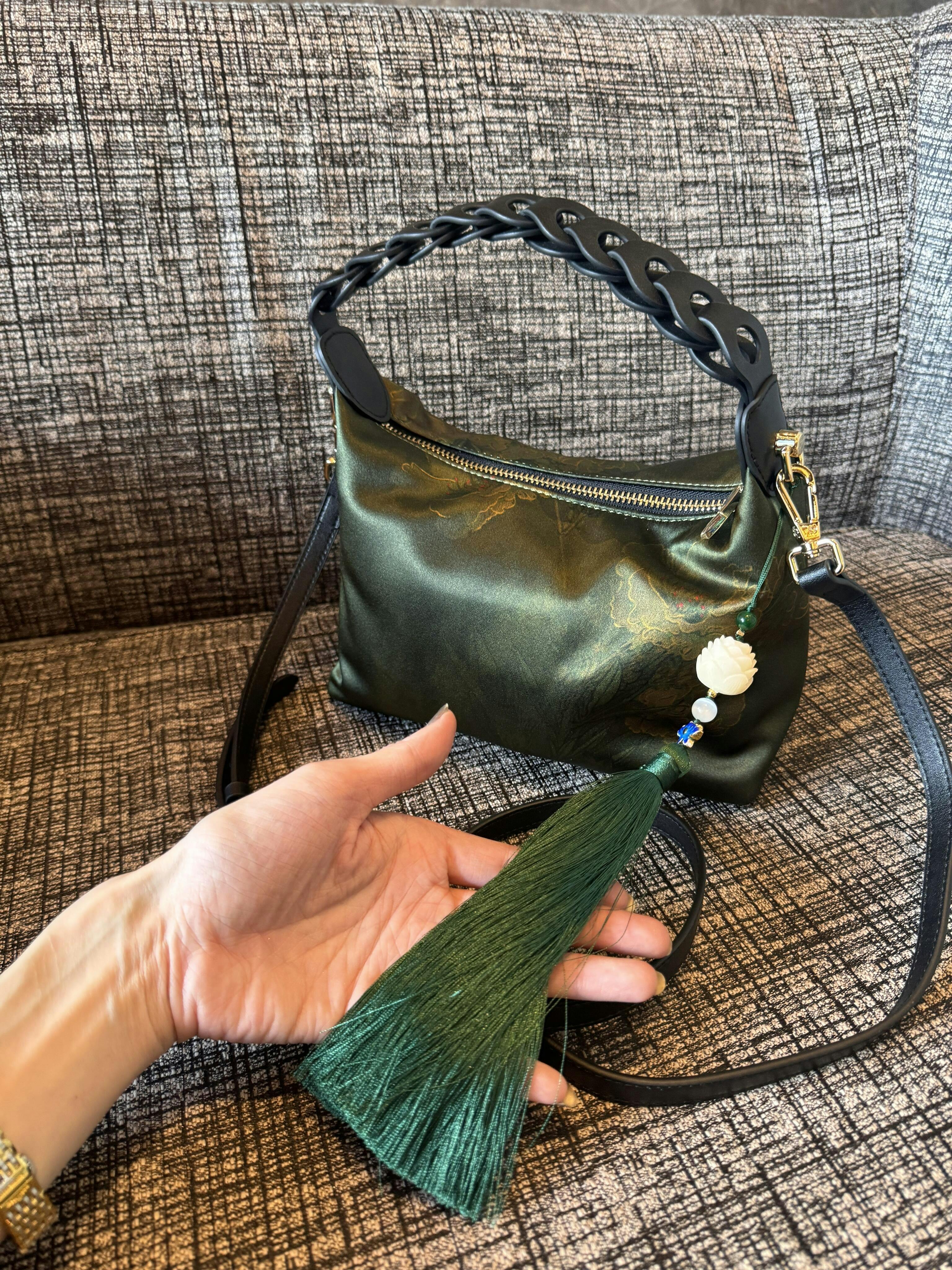 حقيبة كتف من الحرير التوتي الأخضر الداكن من Xiangyunsha
