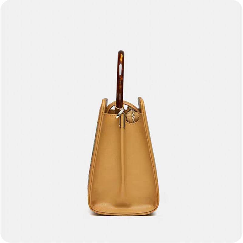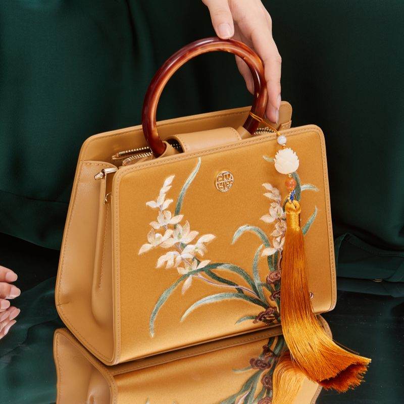 Chinese Painting Xiangyunsha Silk Bamboo Handle Barrel Handbag