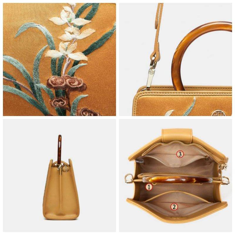 Luxury Leather Magnolia Crossbody Bag Designer Embroidery Satchel