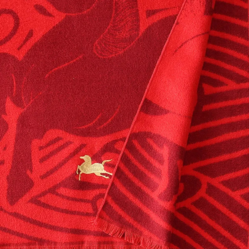 2026 Year of the Horse "Cashmere-Touch" Silk Scarf 180 × 30 cm – Chinese New Year Gift