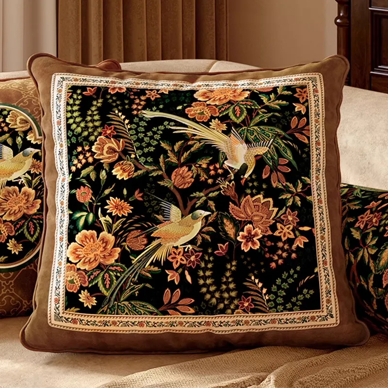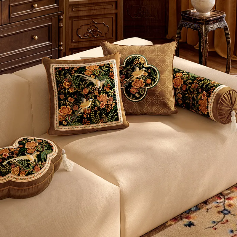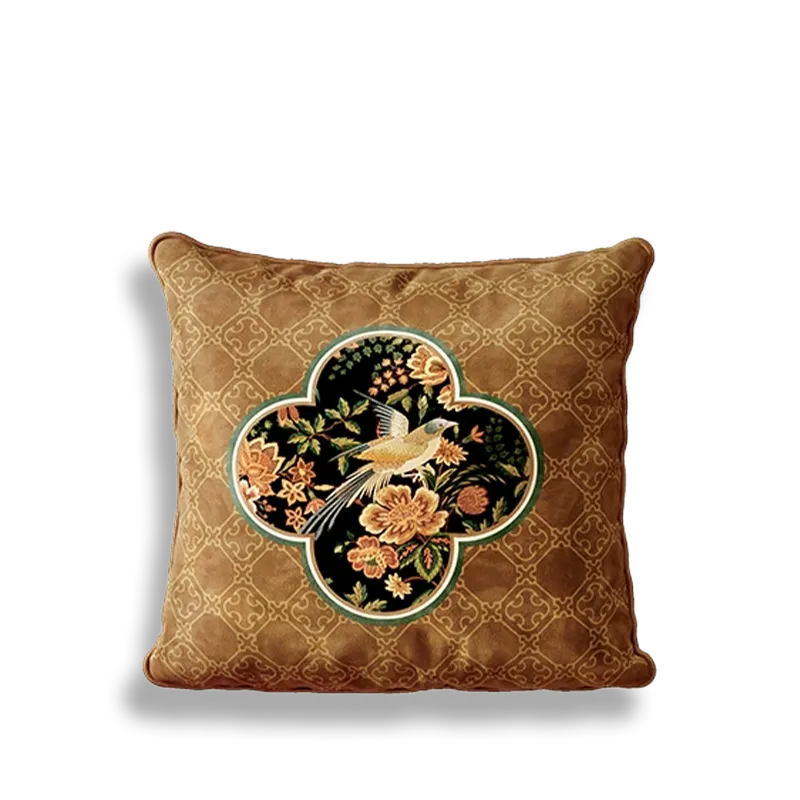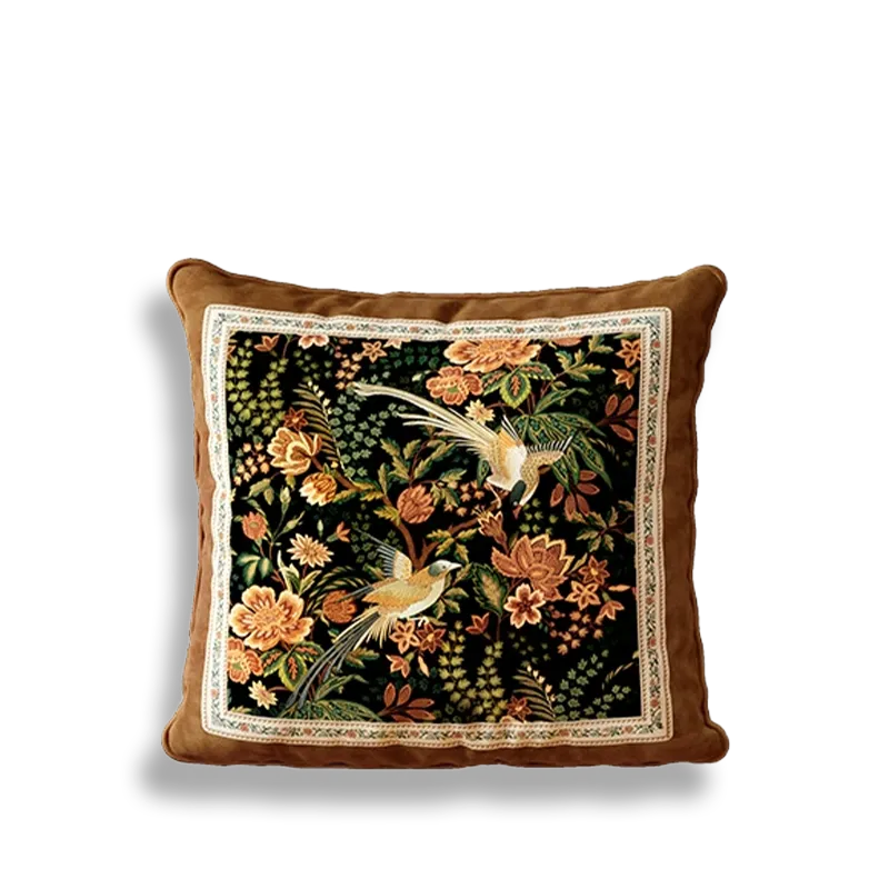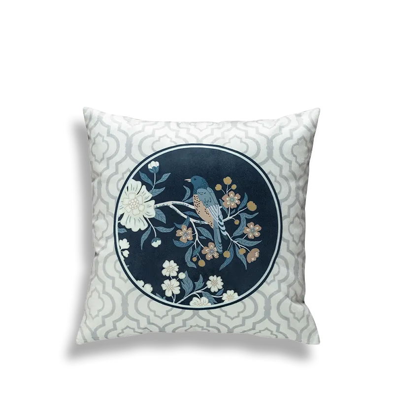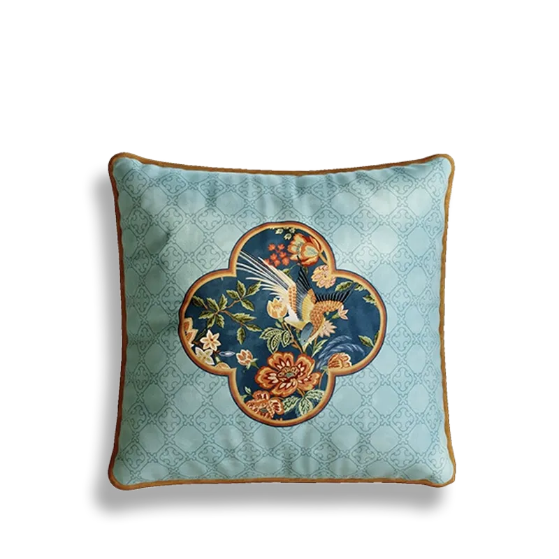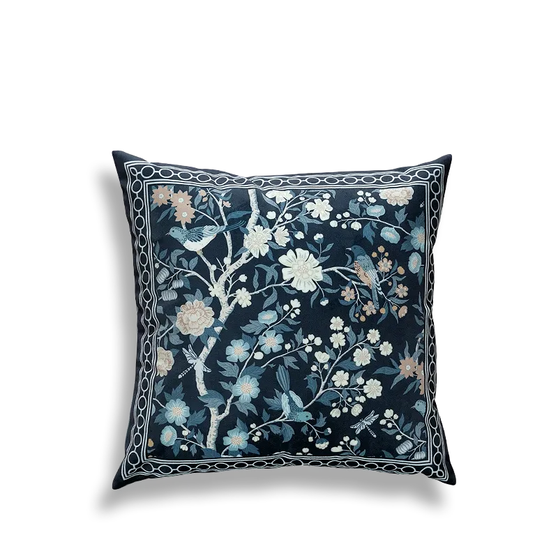 Chinoiserie Moonlit Flowers & Birds Embroidered Throw Pillow for Sofa & Bed Decor