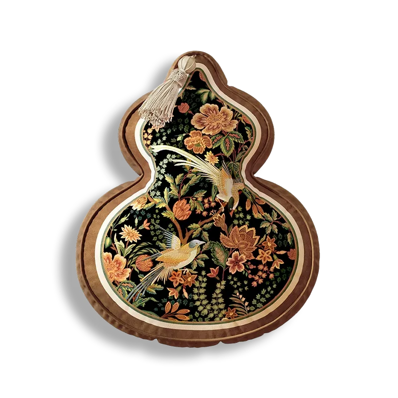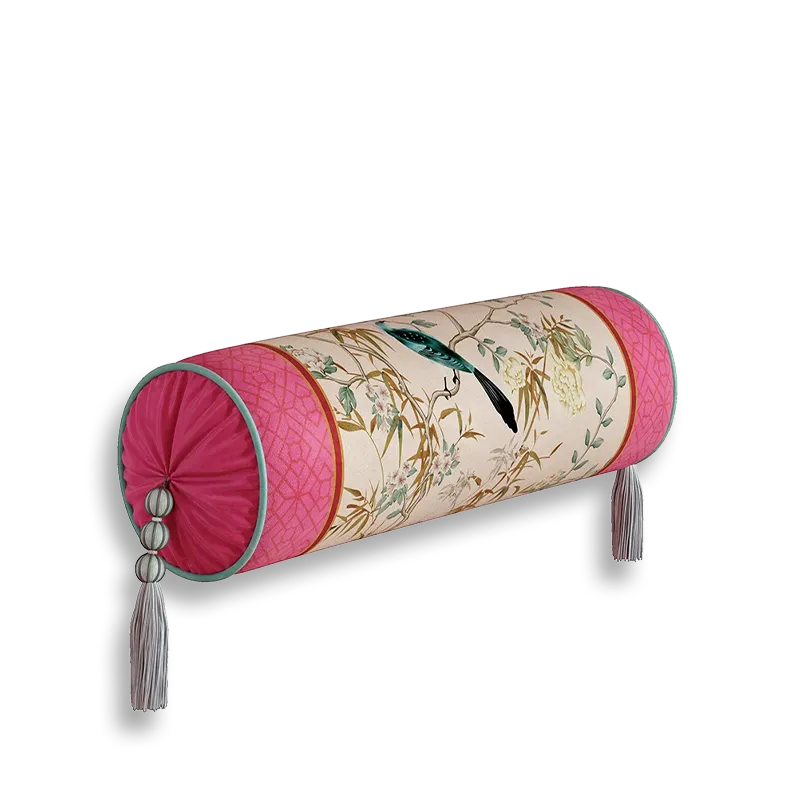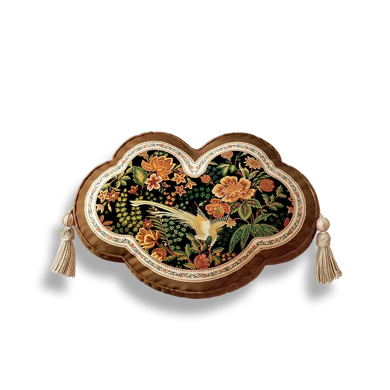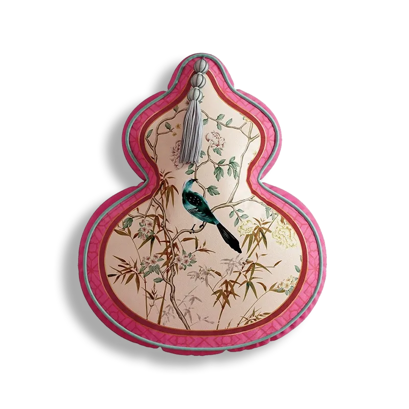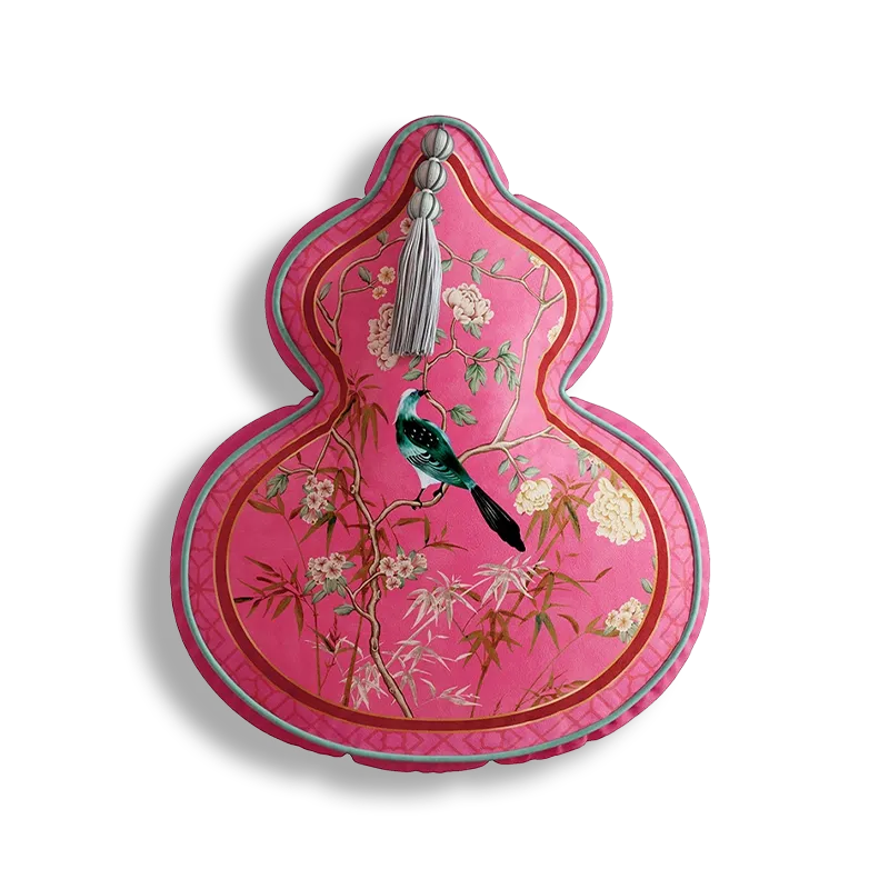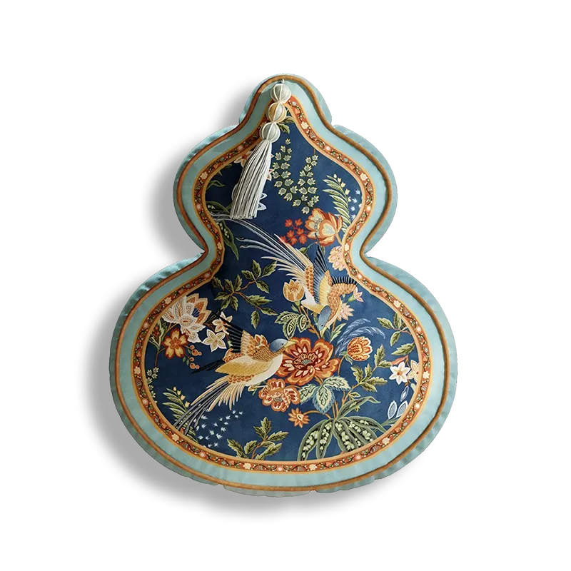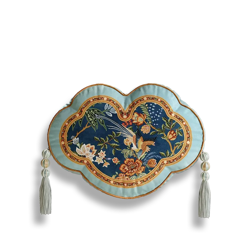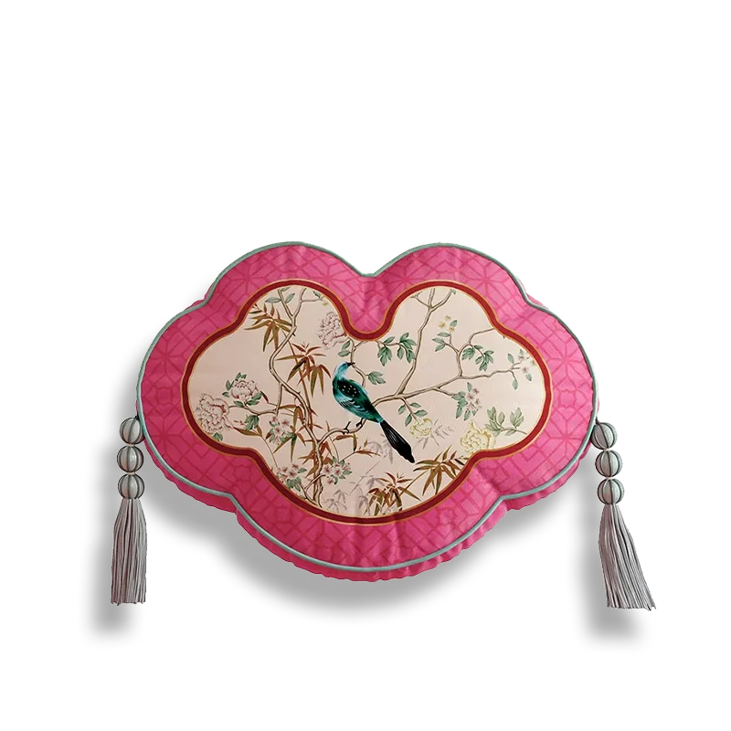 Chinoiserie Watercolor Birds & Blossoms Embroidered Shape Pillow for Sofa & Bed Decor