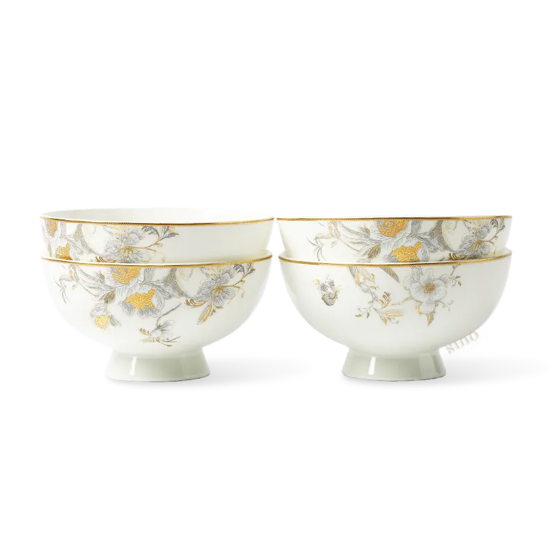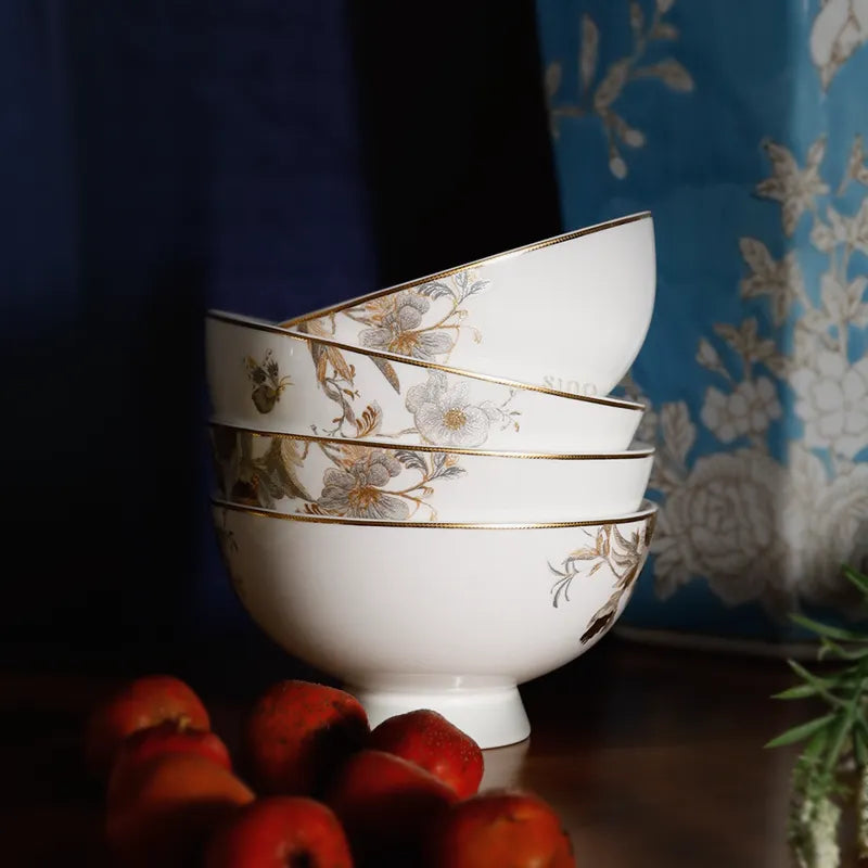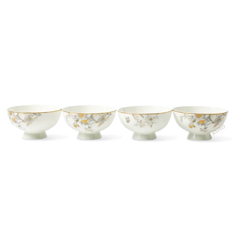 4 Pieces Chinoiserie Bone China Round Bowl – Floral Design