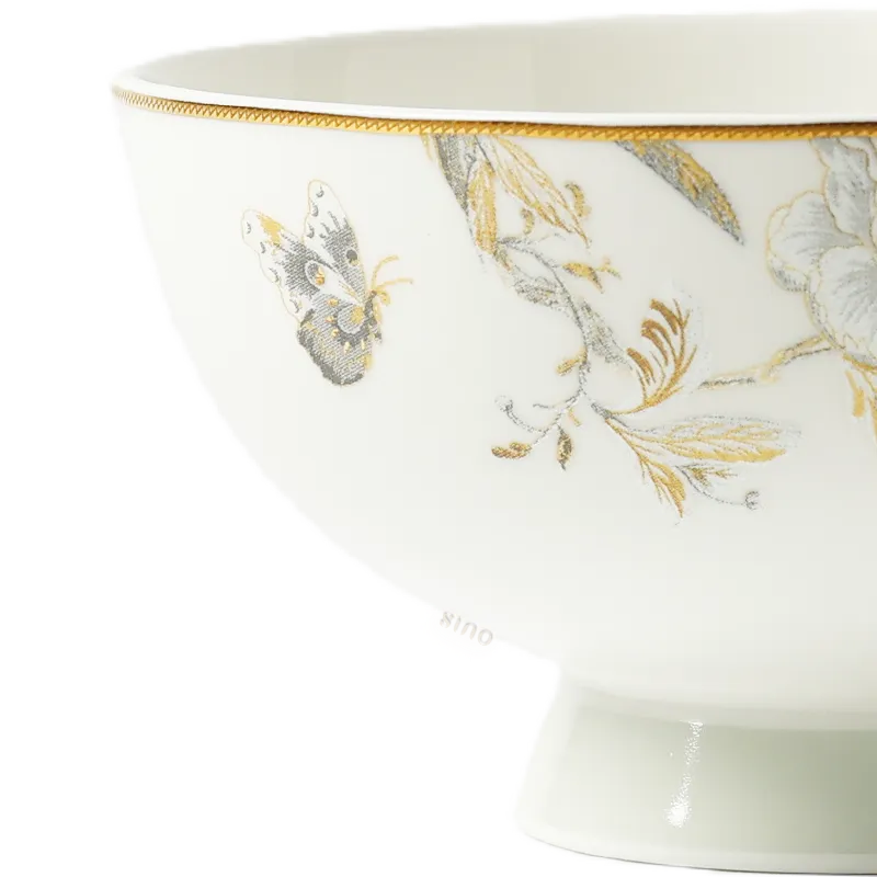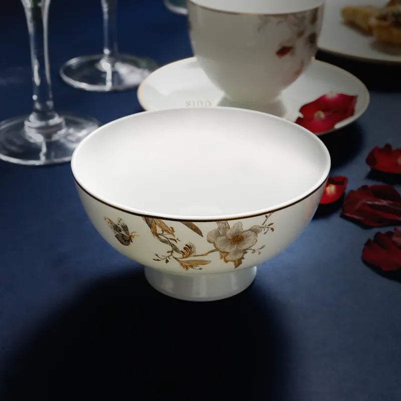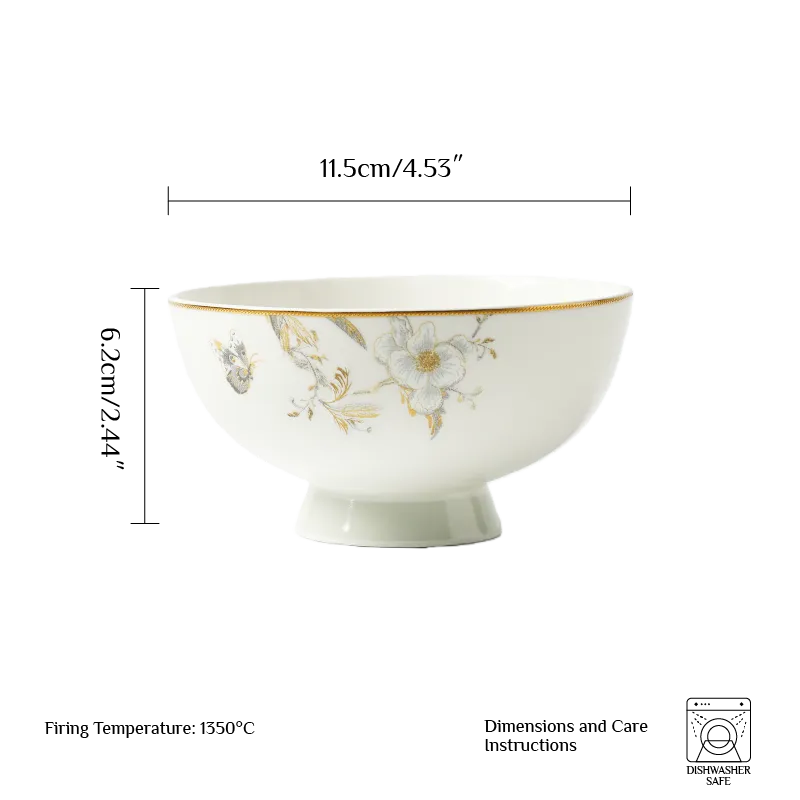 4.5’’ Chinoiserie Luxury Bone China Footed Bowl – Butterfly & Floral Design