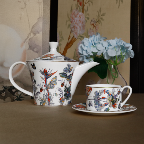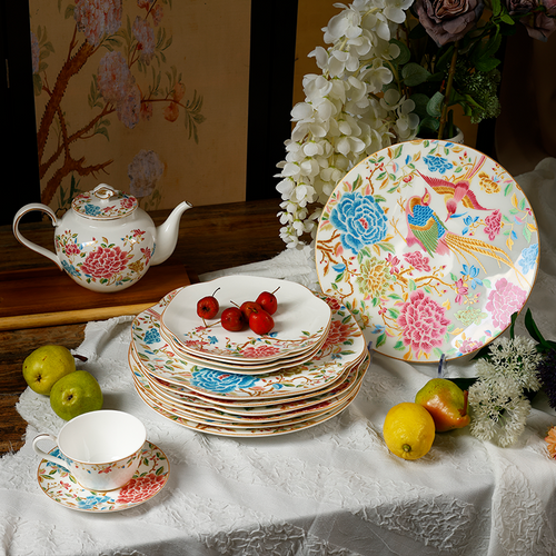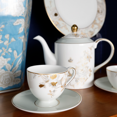 Embroidery Leather Magnolia Tote Bag Elegant Women Handbag with Scarf