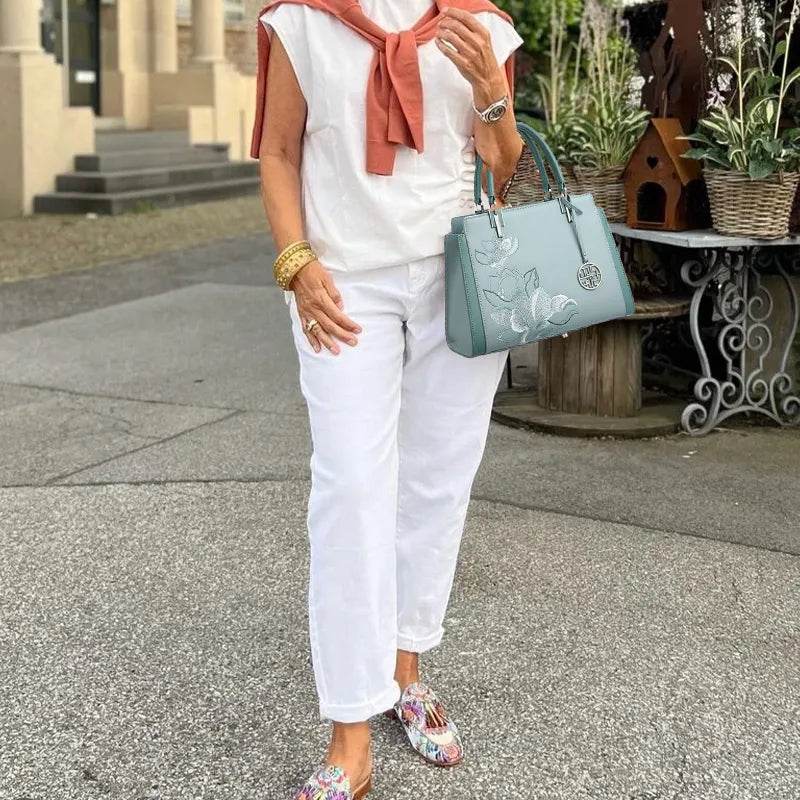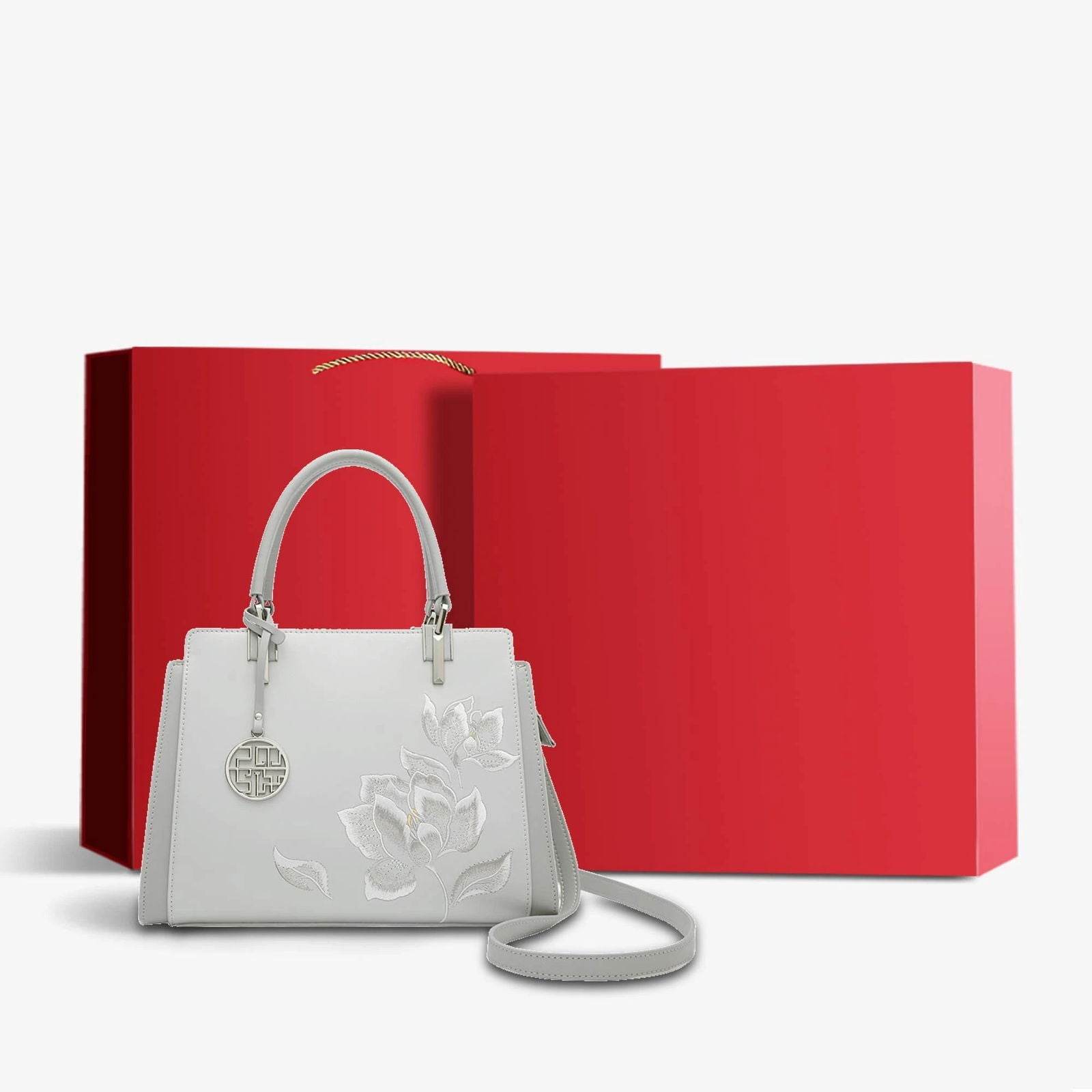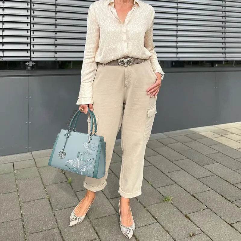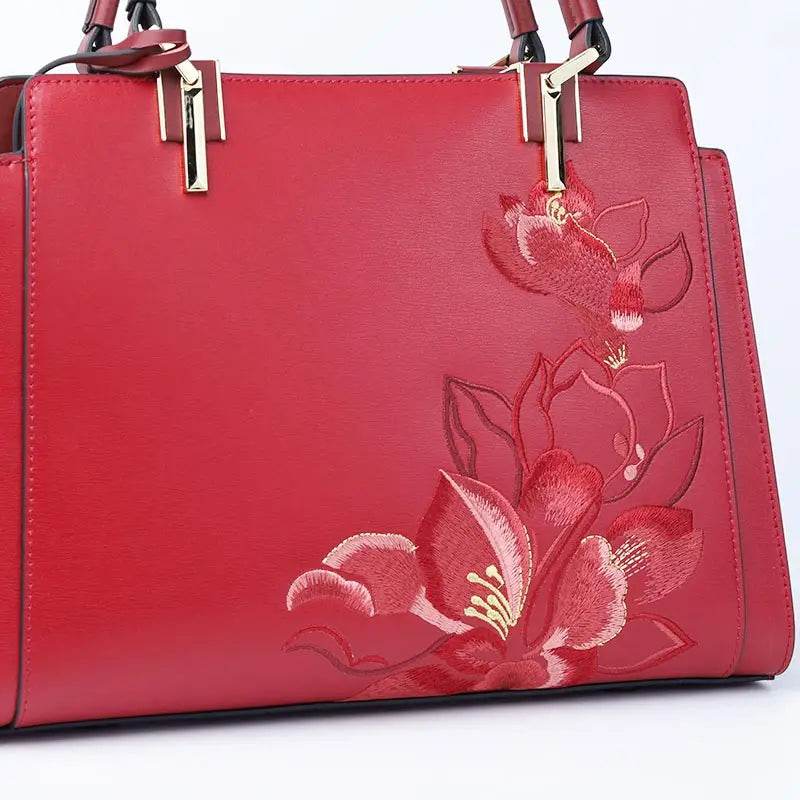 Embroidery Leather Magnolia Crossbody Tote Bag Women Handbag