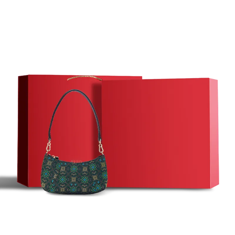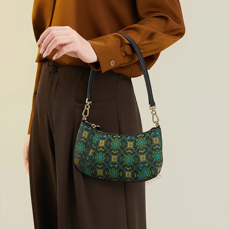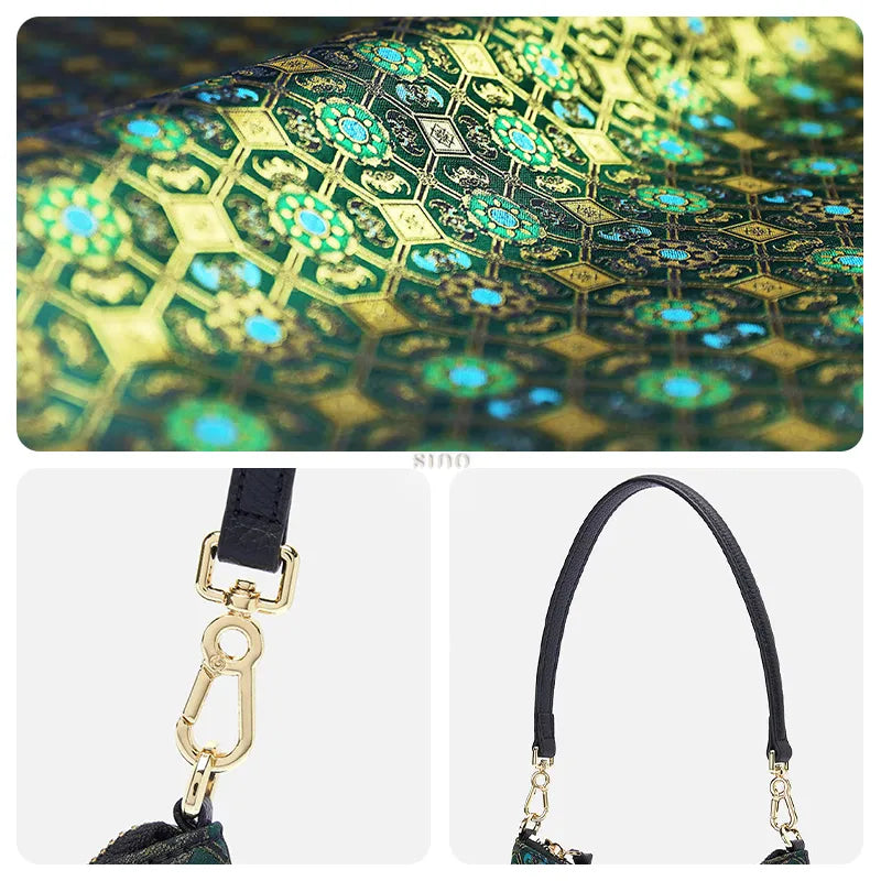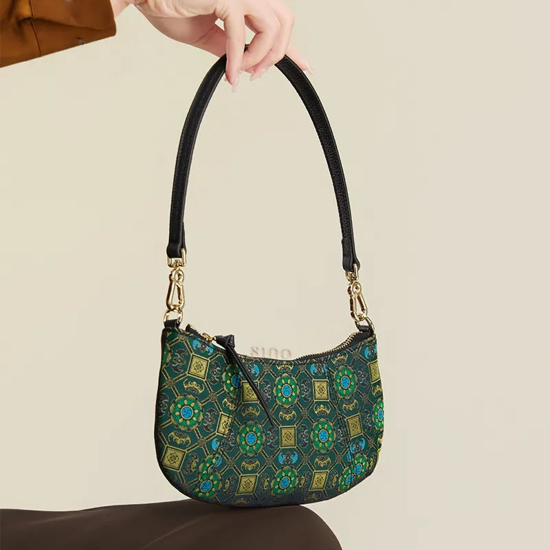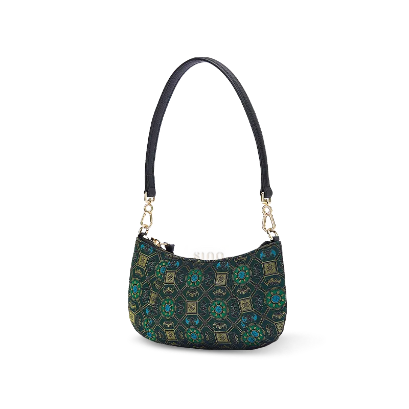 Chinoiserie Luxury Song Brocade Ink-Green Baoxiang Motif Mulberry Silk Crossbody Bag