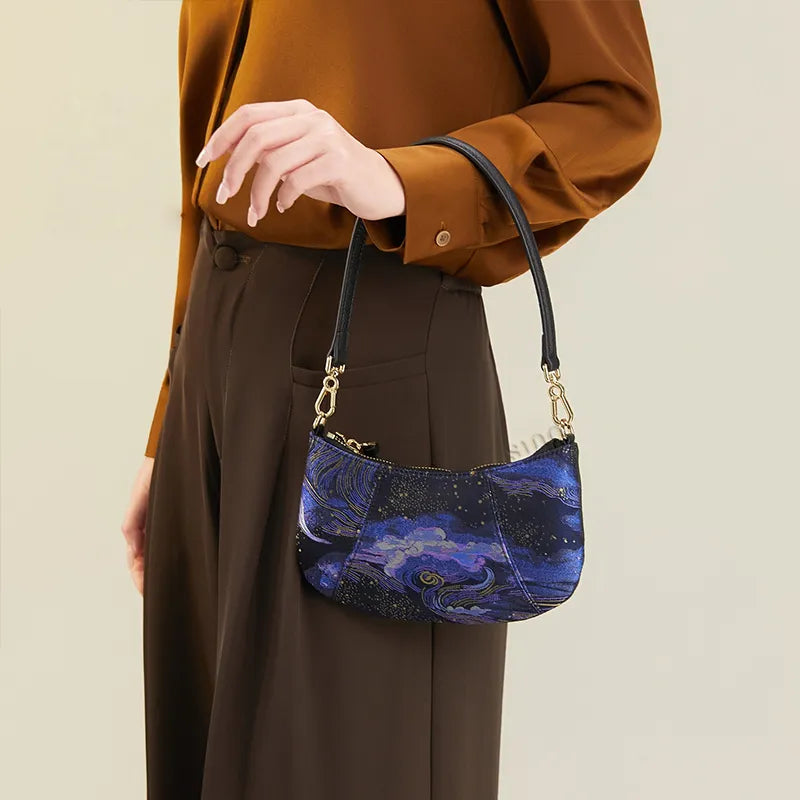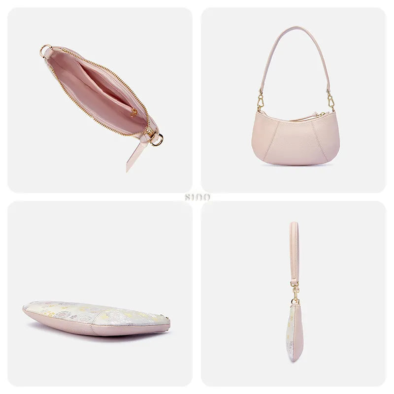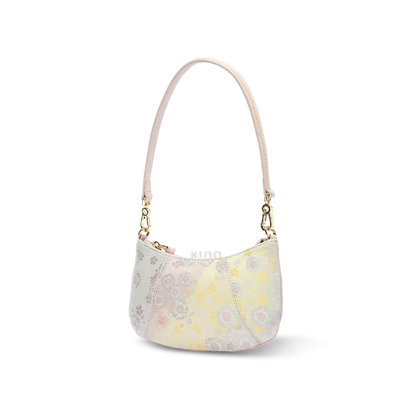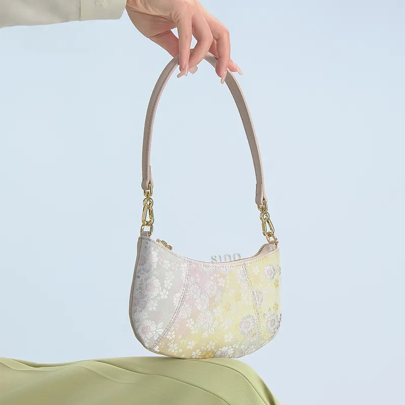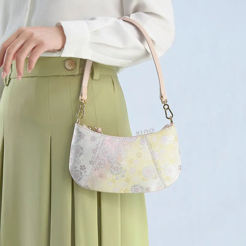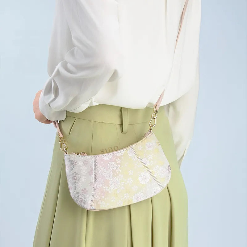Chinoiserie Luxury Xiangyunsha Silk Leather Handbag wtih Printed Blossom