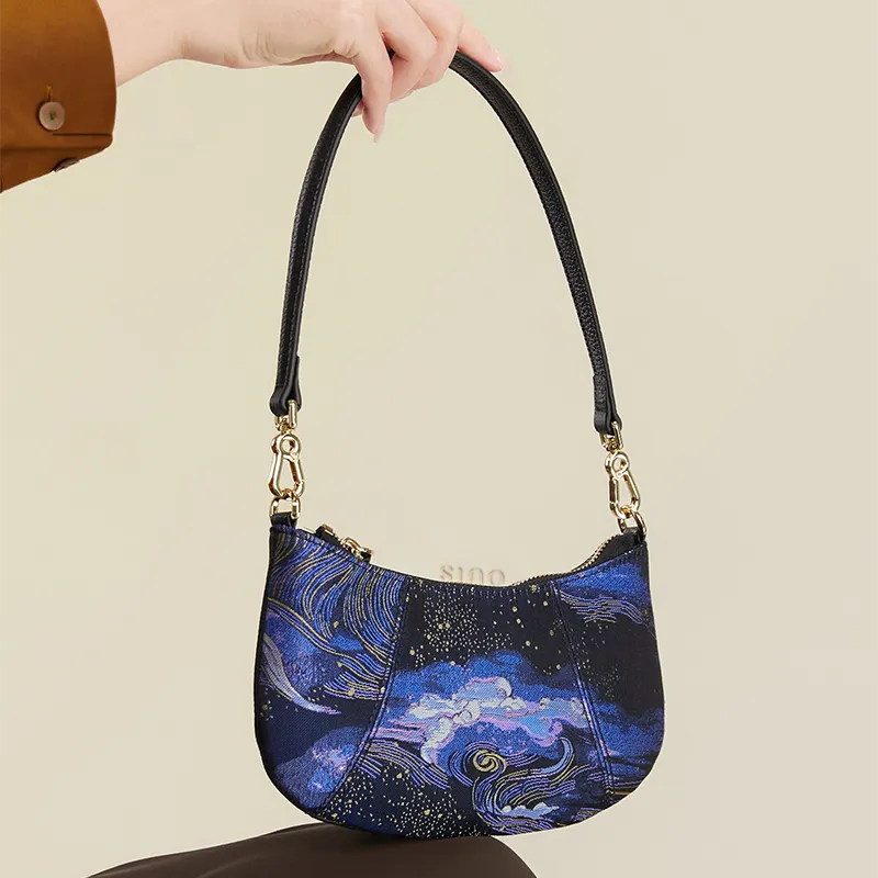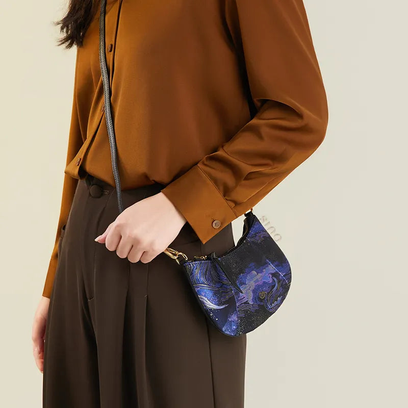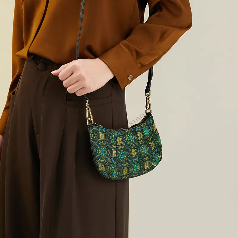 Chinoiserie Luxury Dayun Brocade Silk Crossbody Bag with Pomegranate Motif