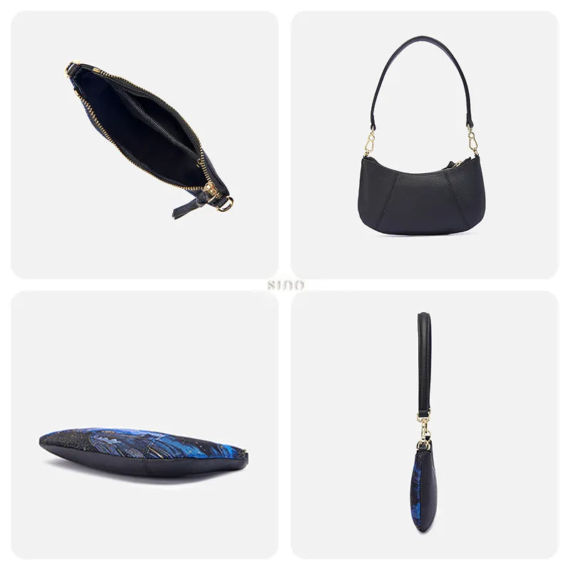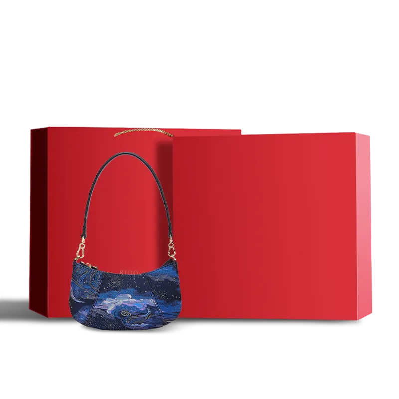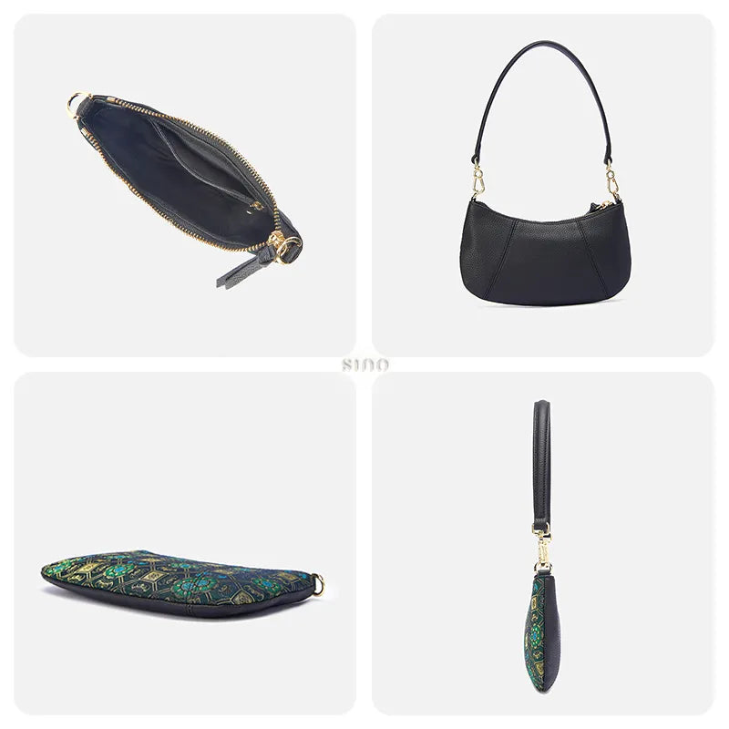 Chinoiserie Luxury Genuine Leather Handbag with Embroidered Baoxiang Motif