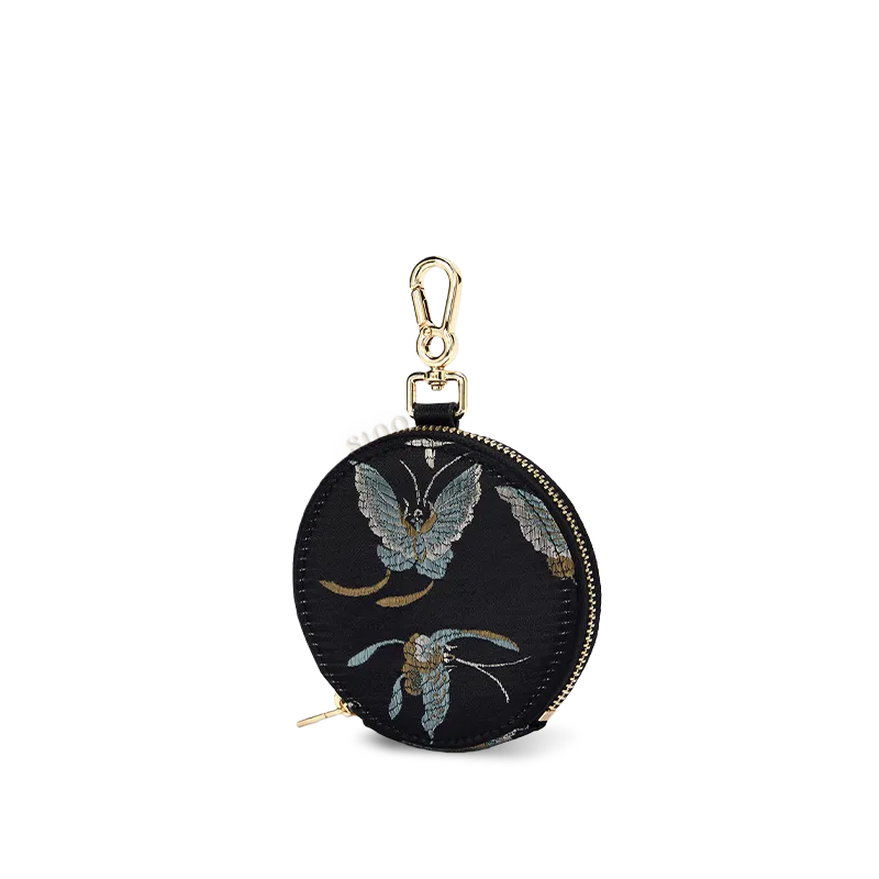 Chinoiserie Luxury Round Ornament Wallet & Bag Charm with Embroidery Motifs