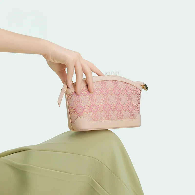 Chinoiserie Luxury Song Brocade Pink Clutch Bag with Ding Sheng Gold Motif