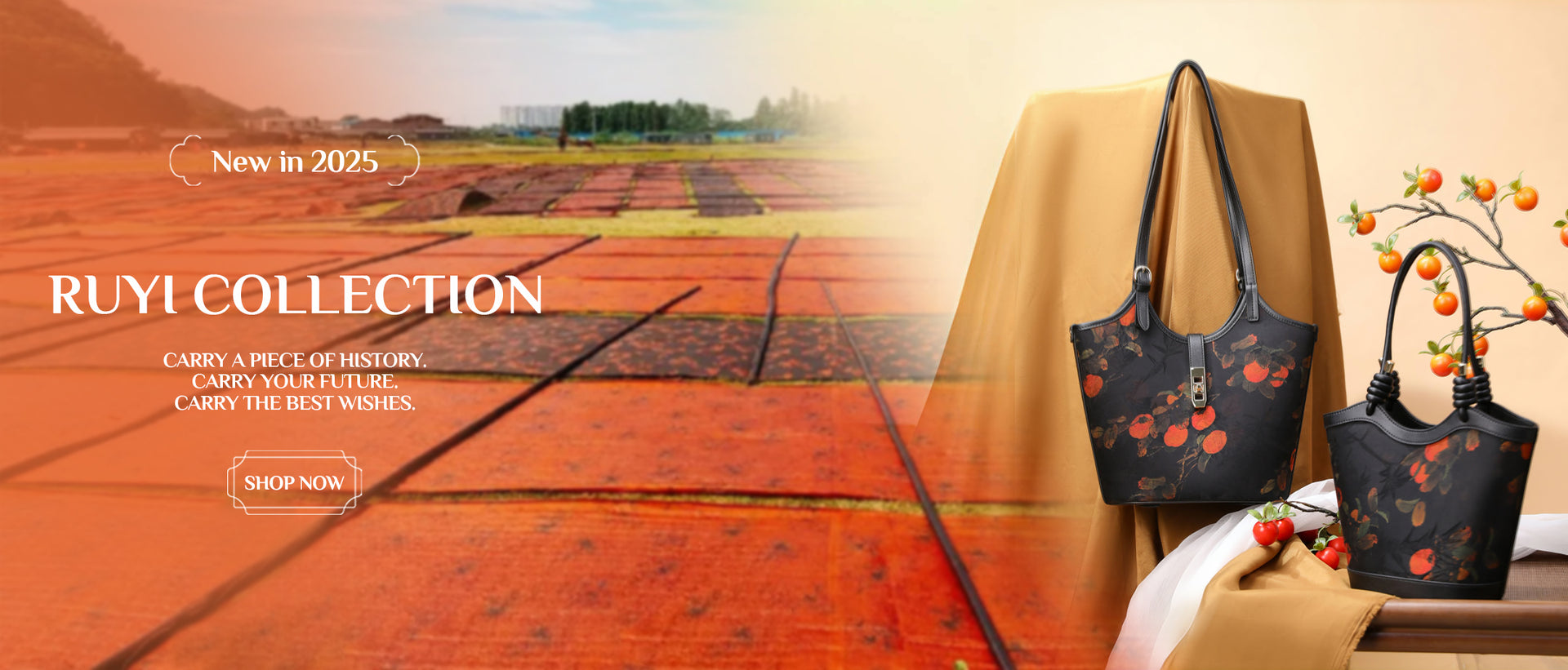 The RUYI Collection combines centuries of Chinese artistry with modern design. At its core is Xiangyunsha silk, handcrafted using traditional techniques. Our persimmon print symbolizes prosperity, while bamboo motifs represent growth and good fortune.