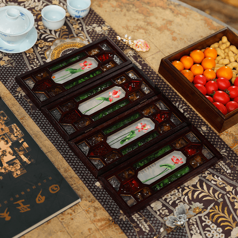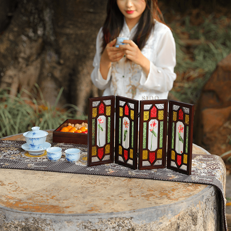 Handcrafted Mulberry Silk Lychee Double-Sided Embroidery Tabletop Decoration