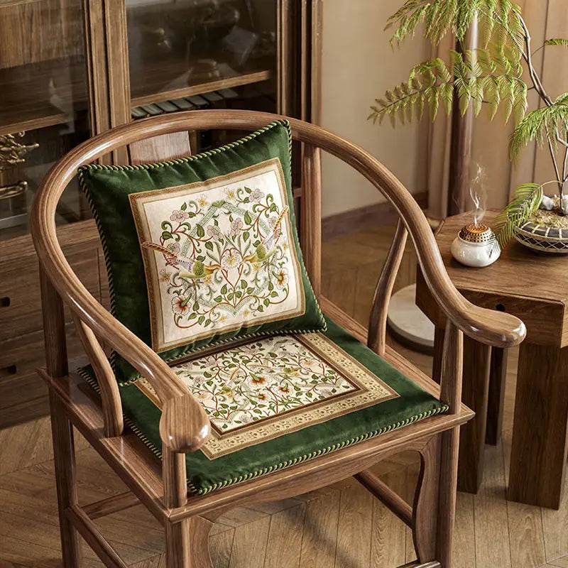 Coussin de chaise en bois court et moelleux avec motif d'hortensia de montagne chinoiserie