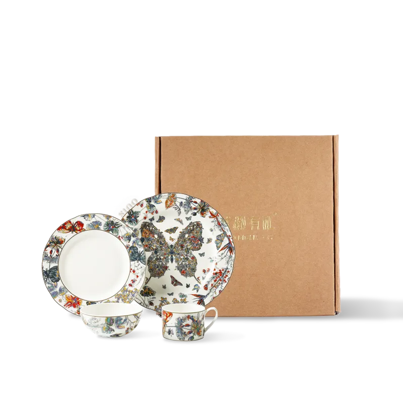 16 Pieces Luxury Chinoiserie Bone China Dinnerware Set – Butterfly & Floral Motif
