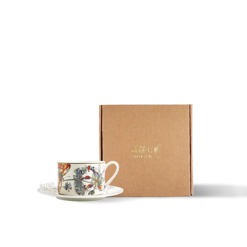 Chinoiserie Bone China Straight-Sided Large Coffee Cup Saucer – Butterfly & Floral Motif