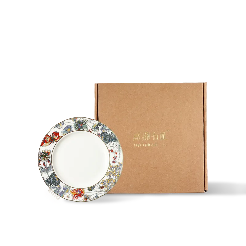 4 Pieces 8’’ Chinoiserie Luxury Enamel Painting Bone China Round Meal Plate Set