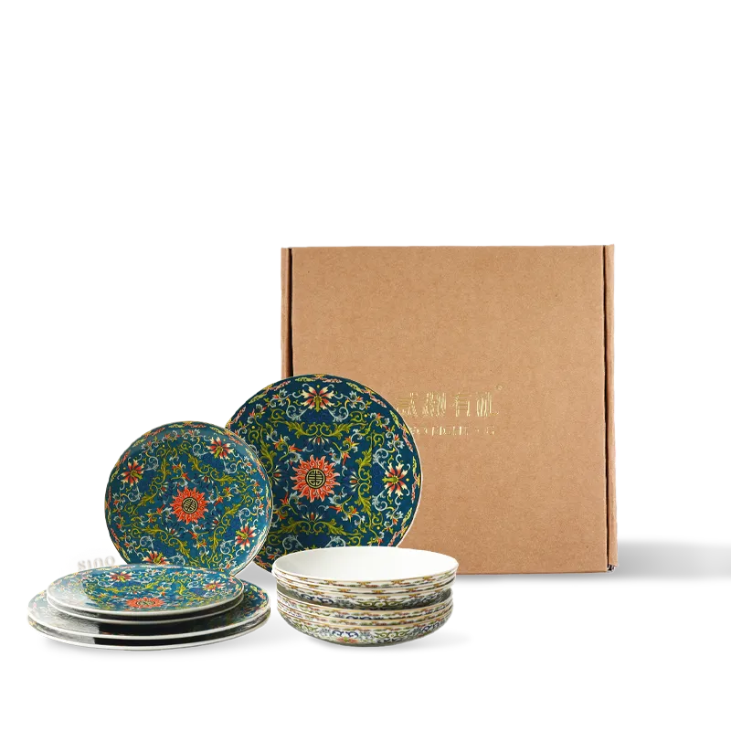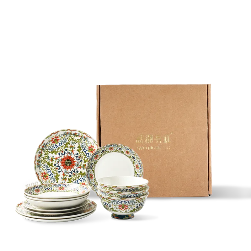 12 Pieces Chinoiserie Luxury Enamel Painting Bone China Casual Dinnerware Set