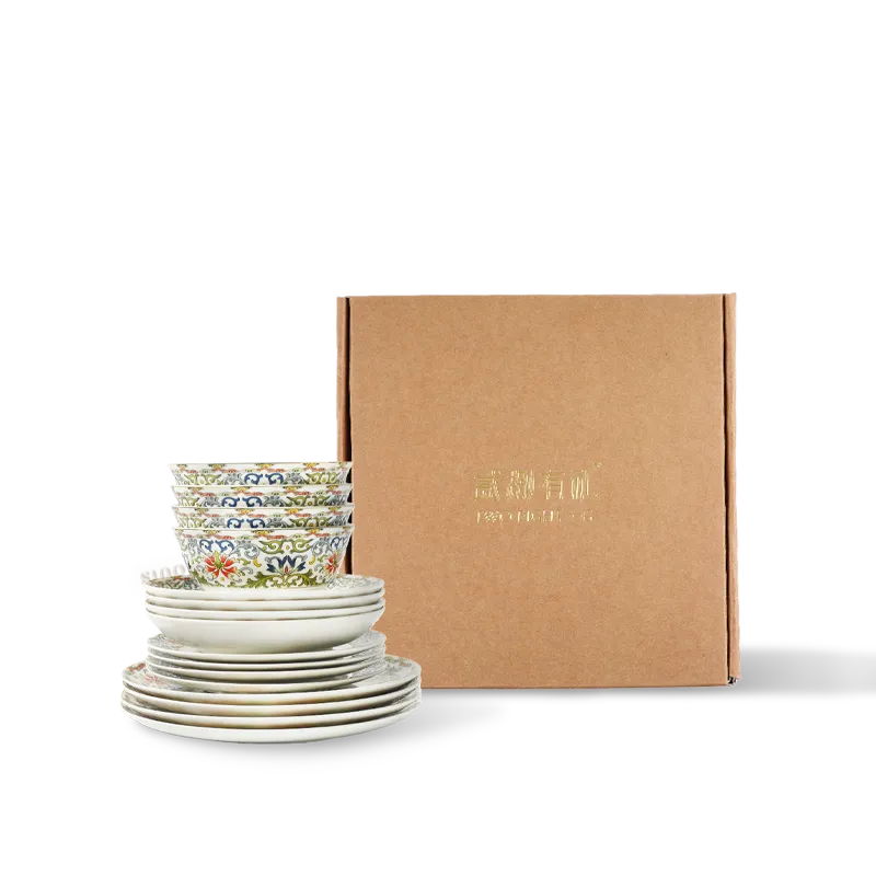 16 Pieces Chinoiserie Luxury Enamel Painting Bone China Casual Dinnerware Set