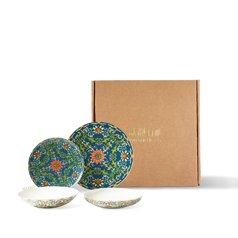 2 Pieces 8’’ Chinoiserie Luxury Enamel Painting Bone China Round Soup Plate Set