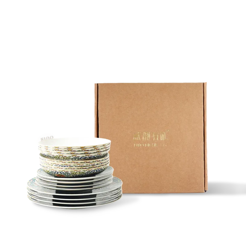 12 Pieces Chinoiserie Luxury Enamel Painting Bone China Casual Dinnerware Set