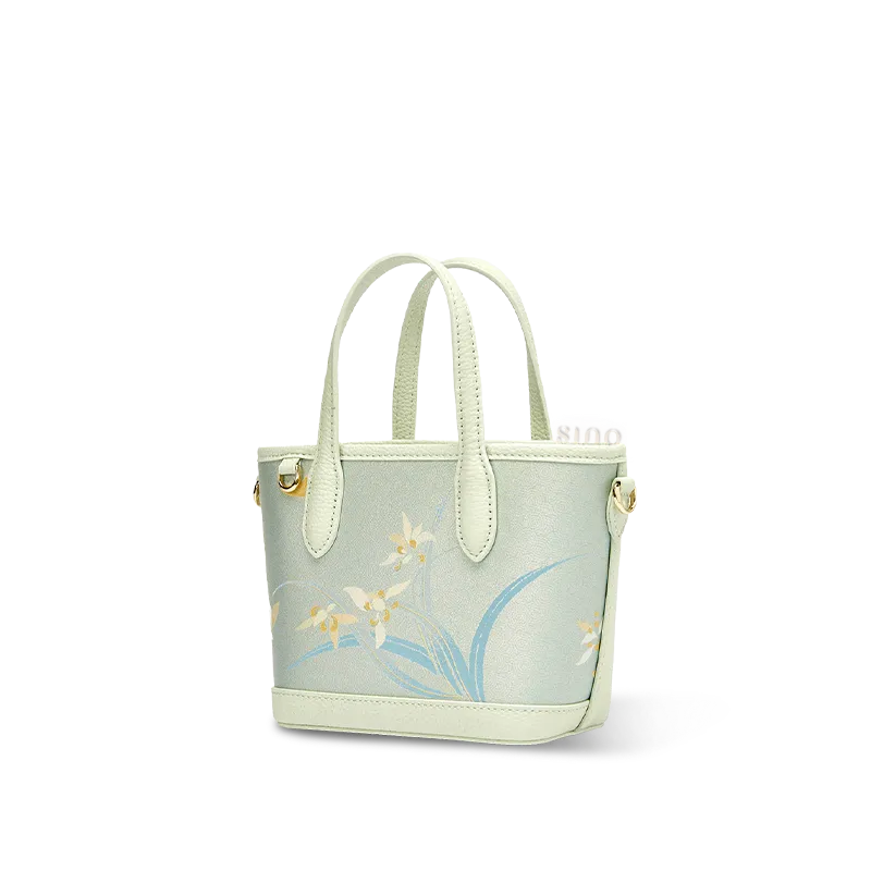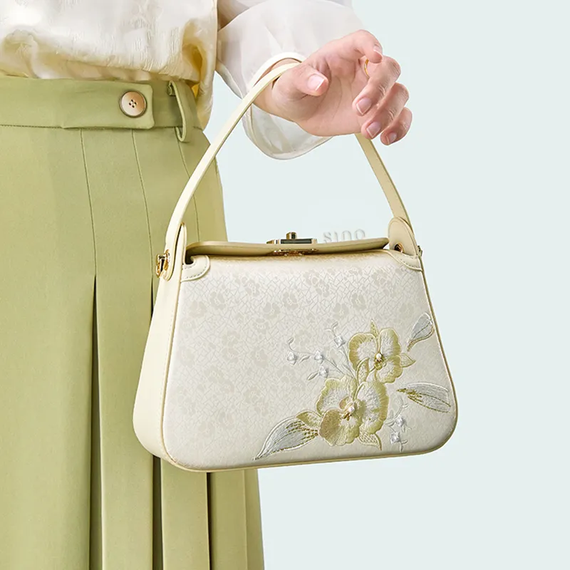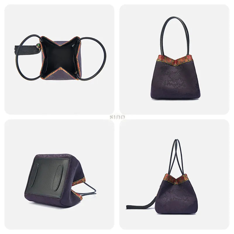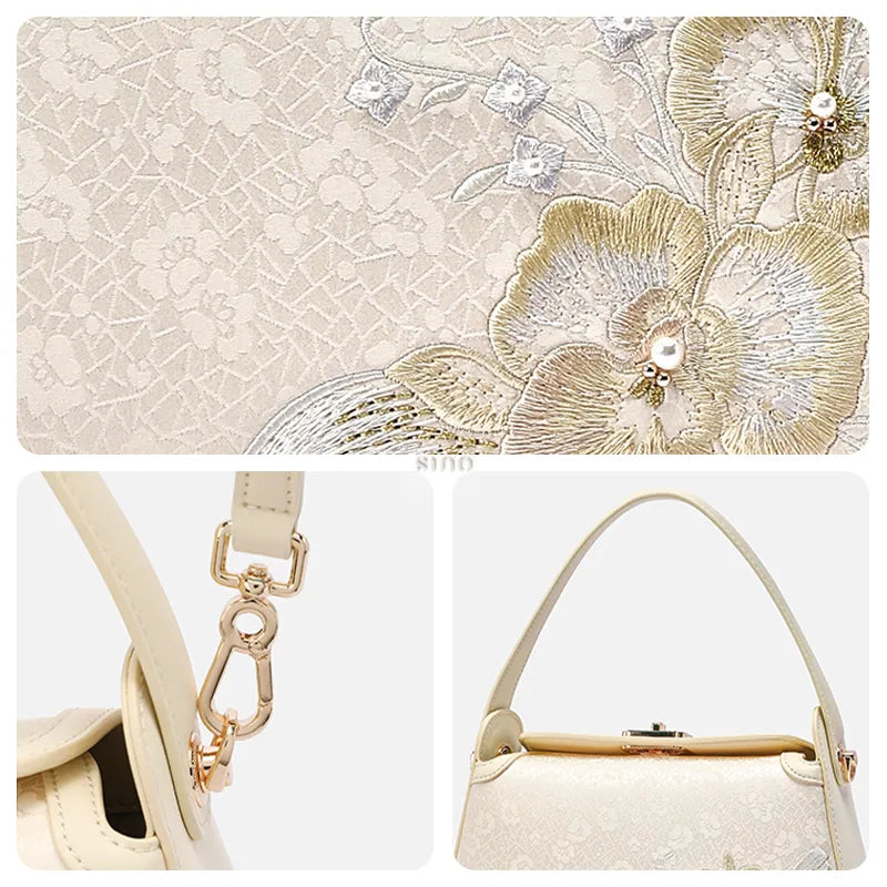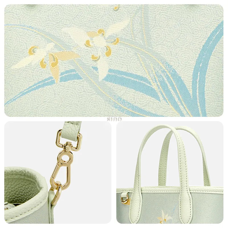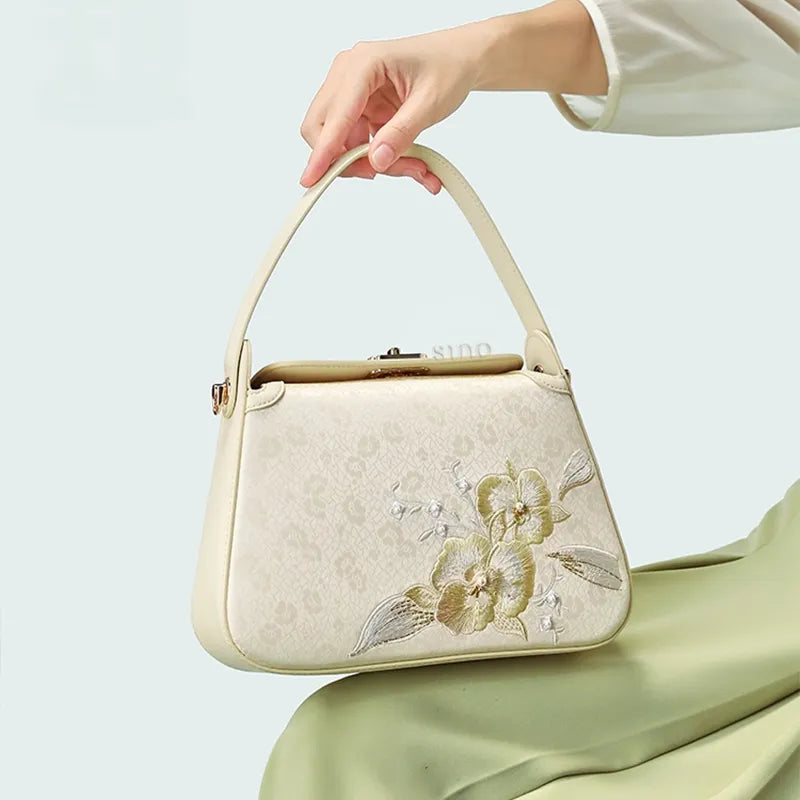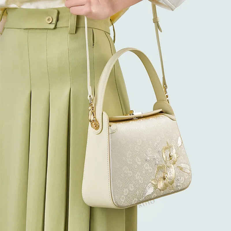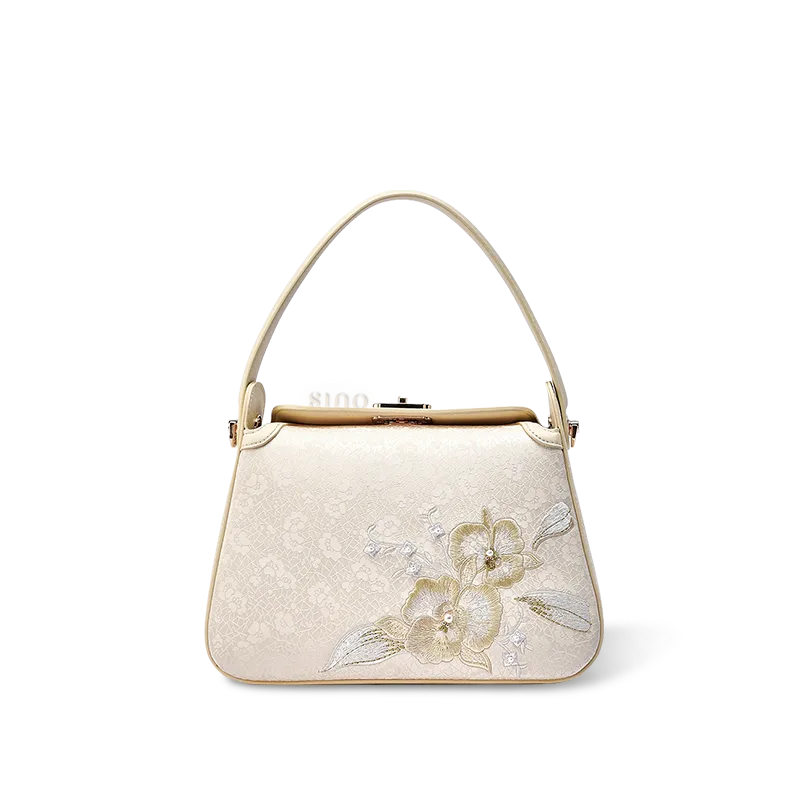 Chinoiserie Luxury Xiangyunsha Silk Leather Handbag wtih Printed Blossom