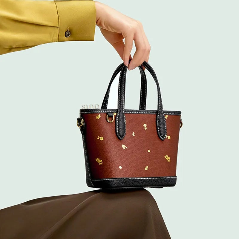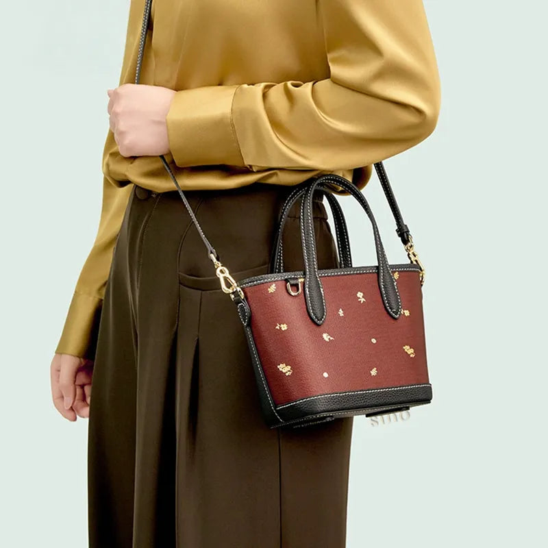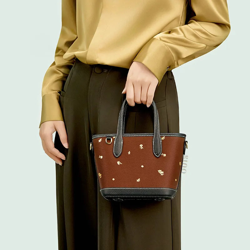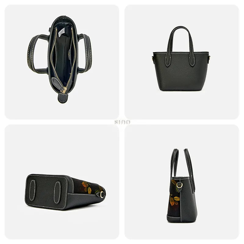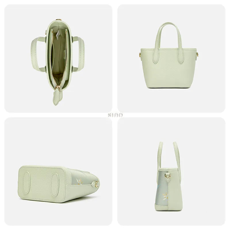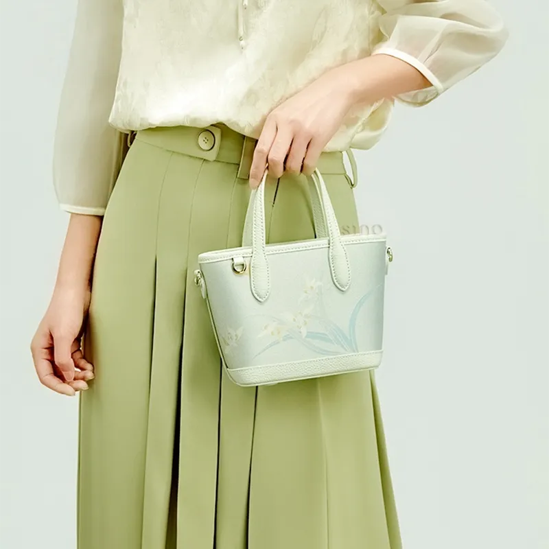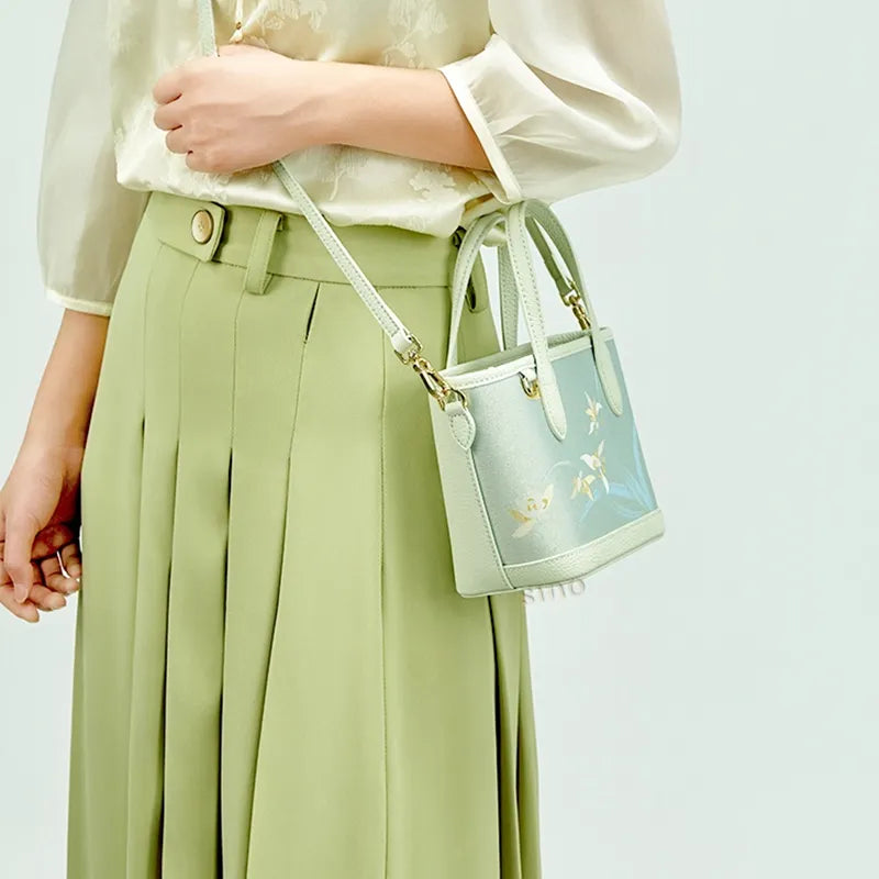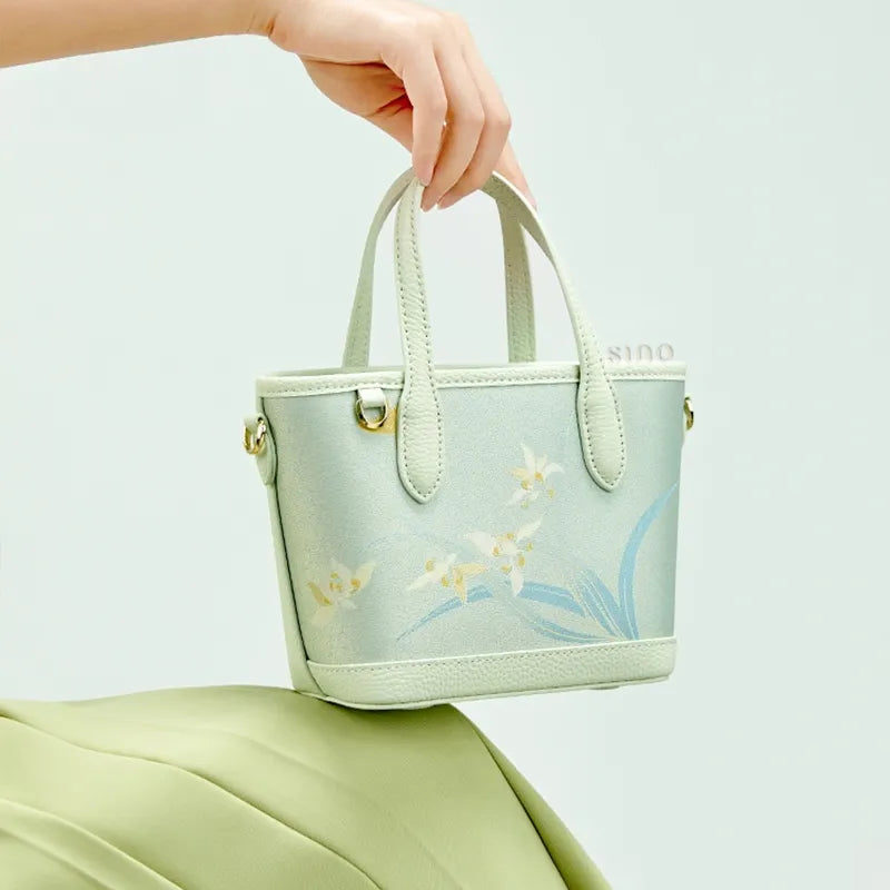 Chinoiserie Luxury Xiangyunsha Silk Leather Handbag wtih Printed Blossom