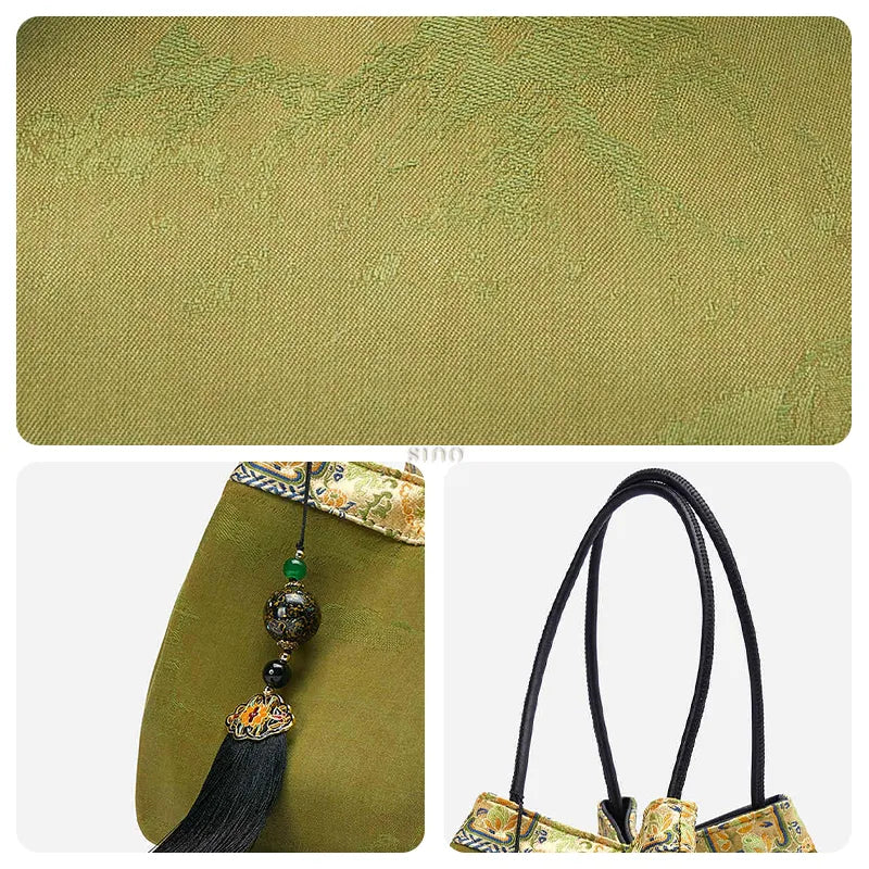 Mulberry silk is exceptionally soft and smooth, providing a comfortable and luxurious feel to the bags.The natural sheen of mulberry silk enhances the appearance of the bags, giving them a bright and vibrant look. Mulberry silk exhibits high strength and durability, ensuring the longevity of the hand-embroidered bags.In addition,mulberry silk is a natural and renewable fiber, contributing to the sustainability and eco-friendliness of the bags compared to some synthetic materials.
