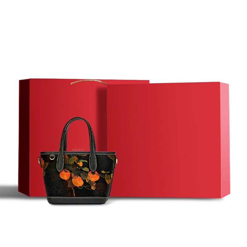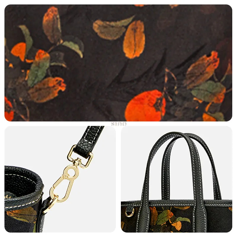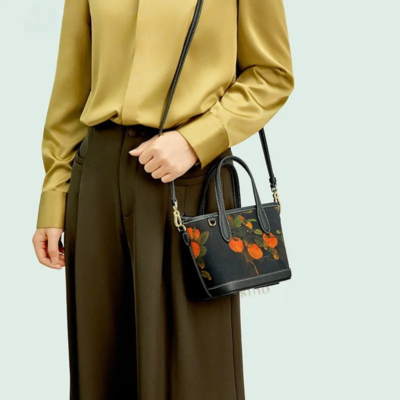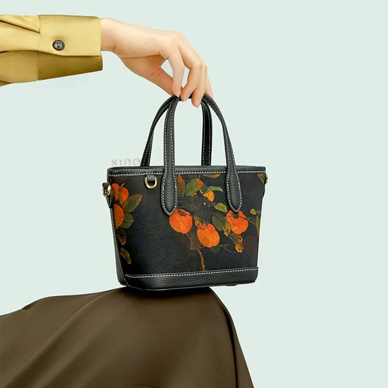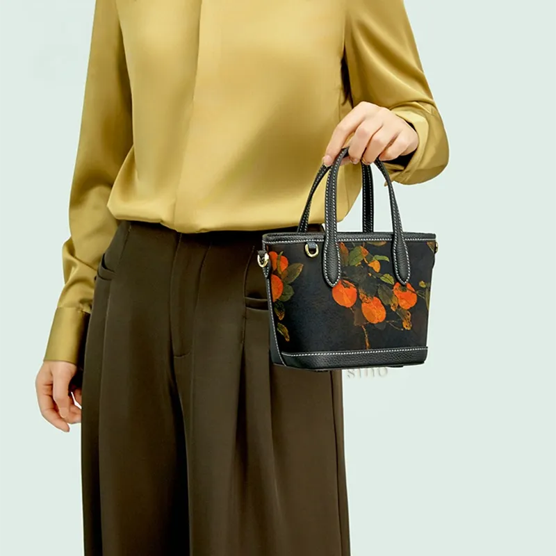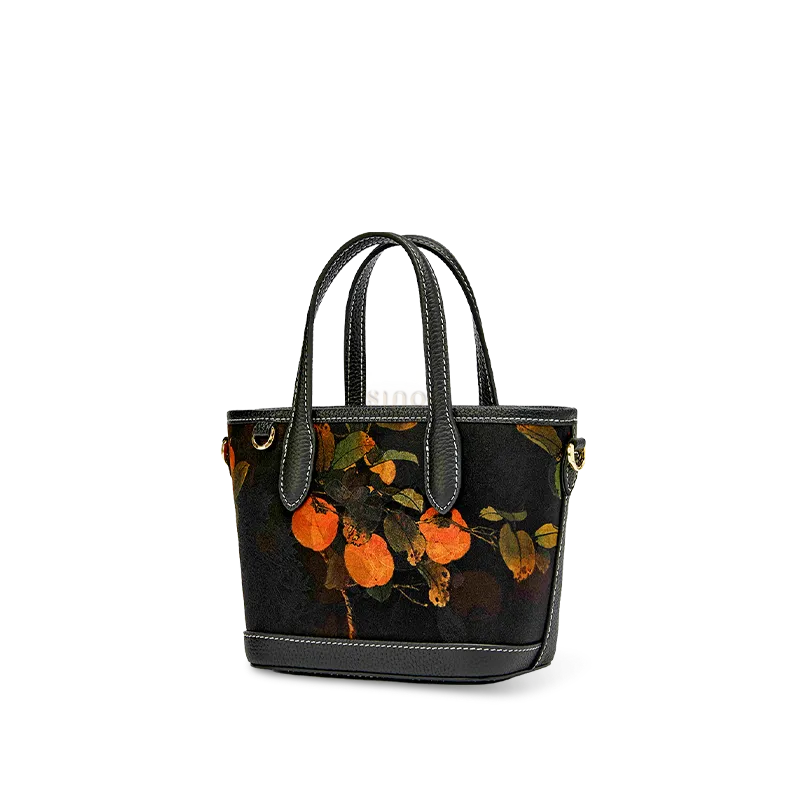 Chinoiserie Luxury Xiangyunsha Silk Leather Handbag wtih Printed Persimmon